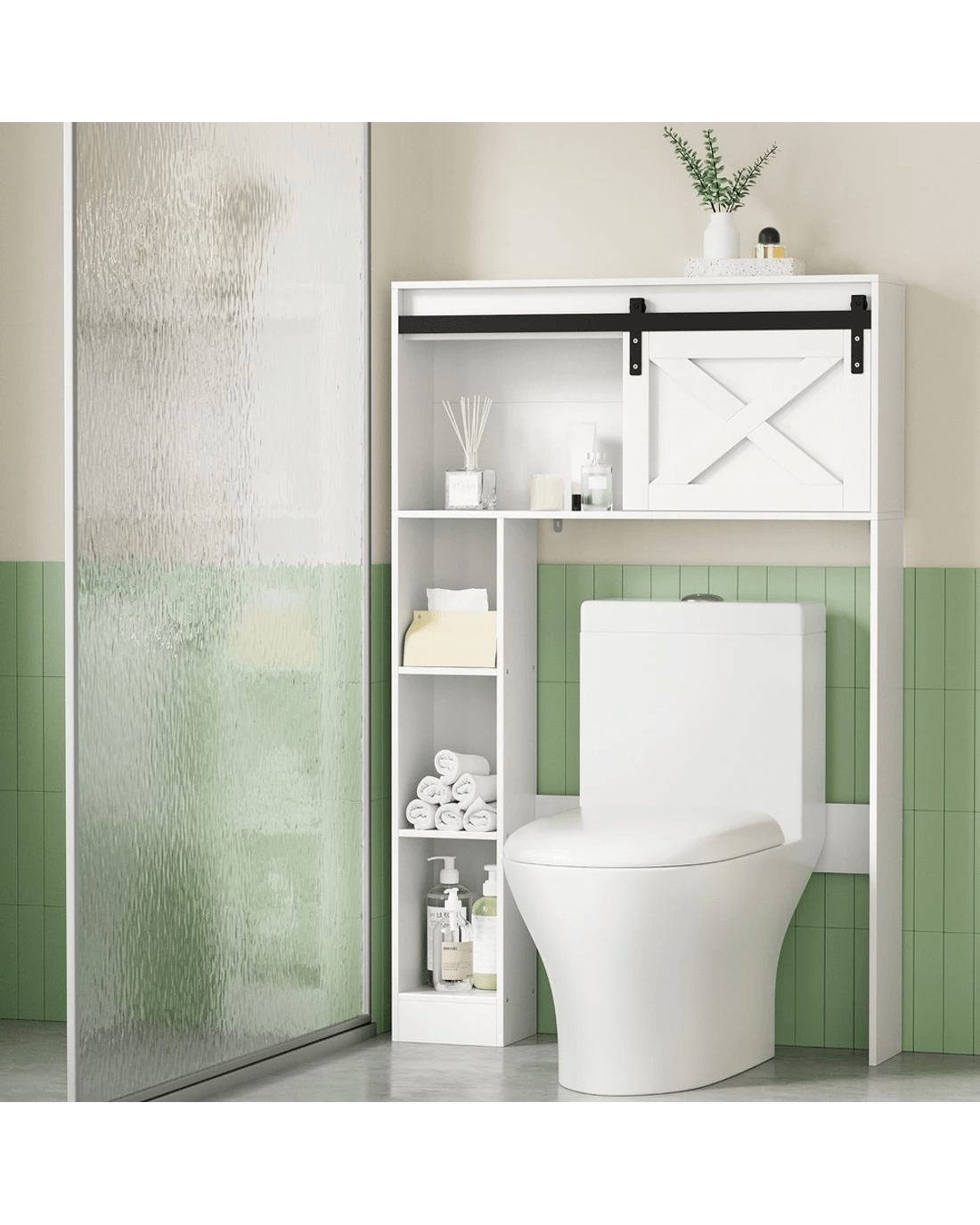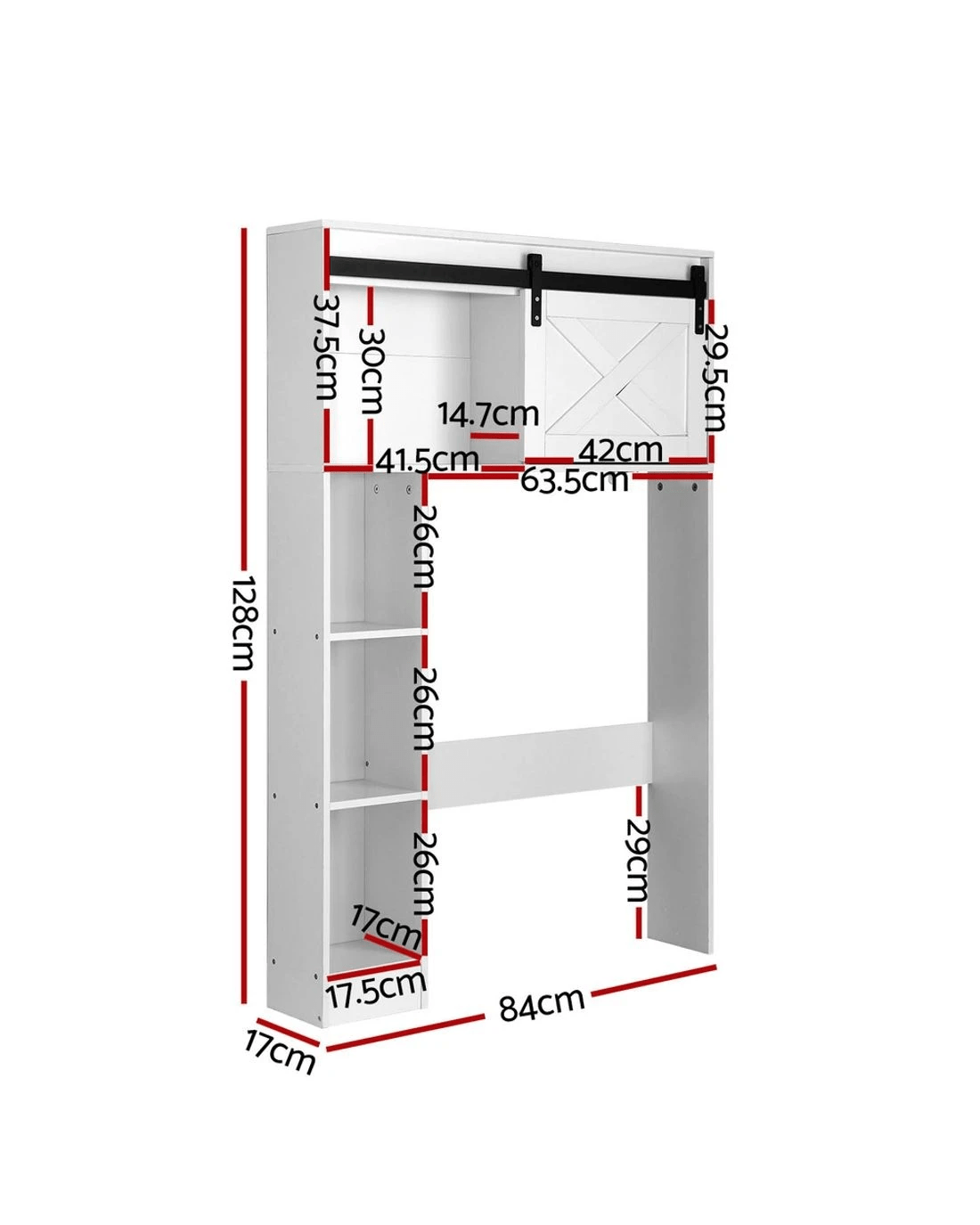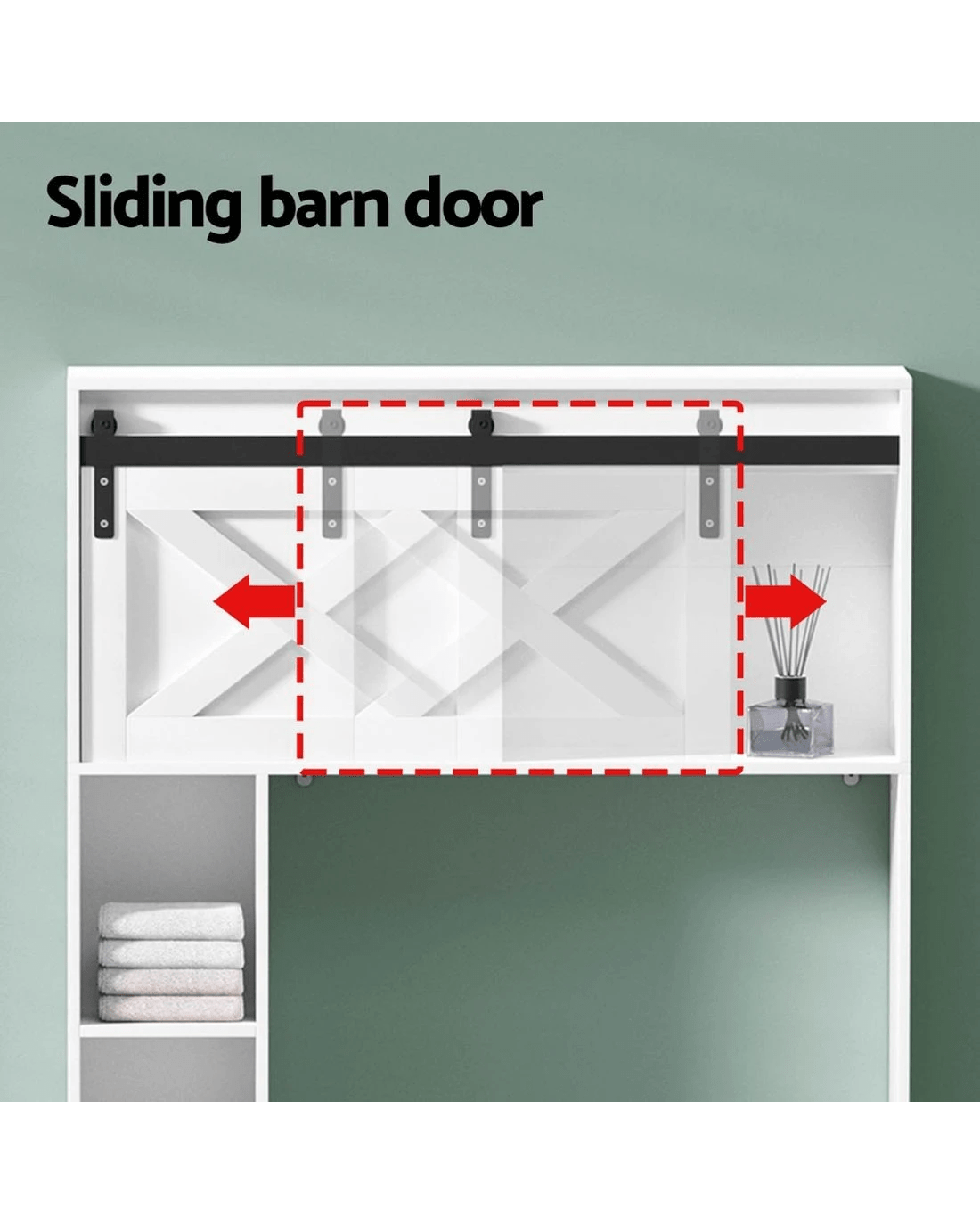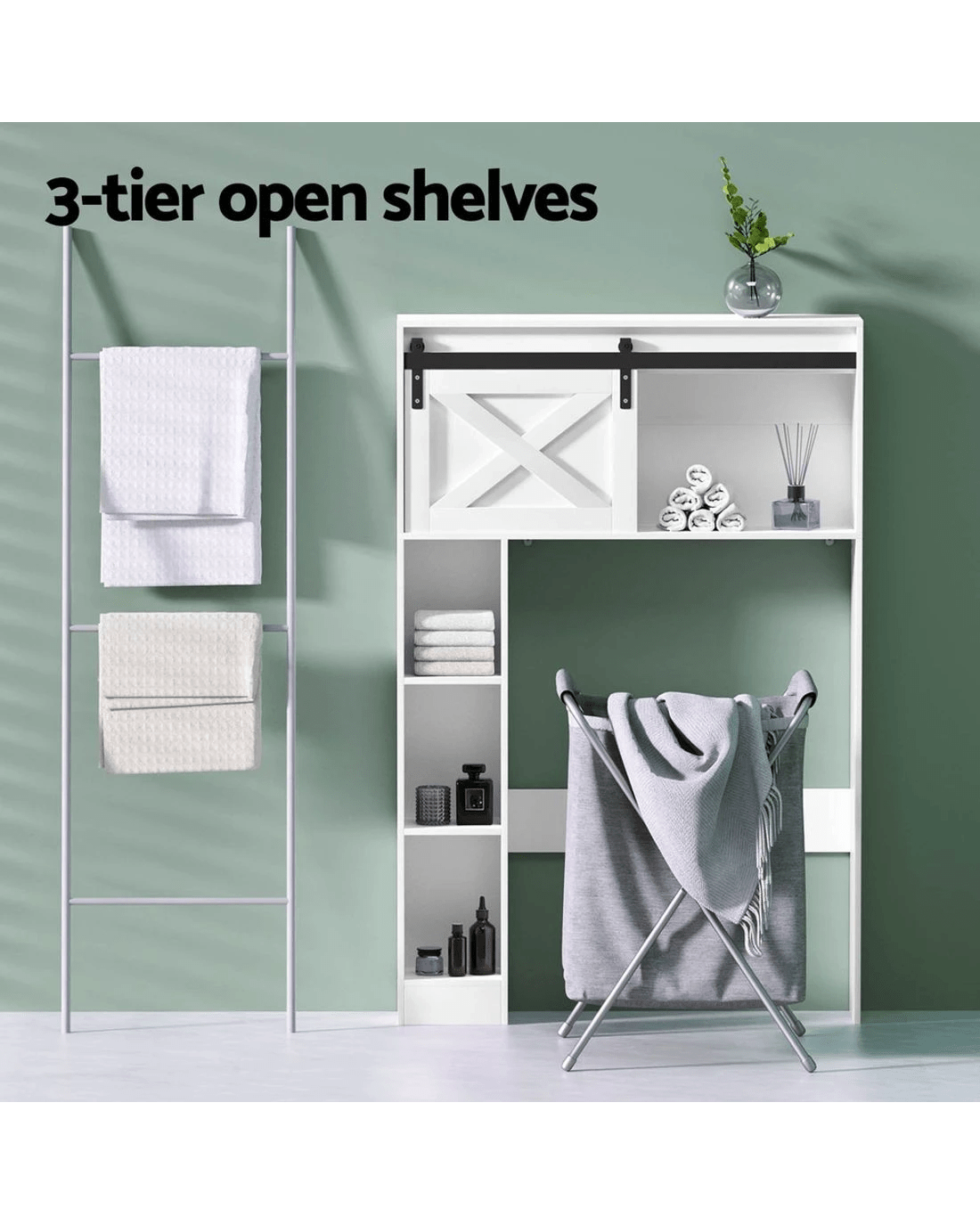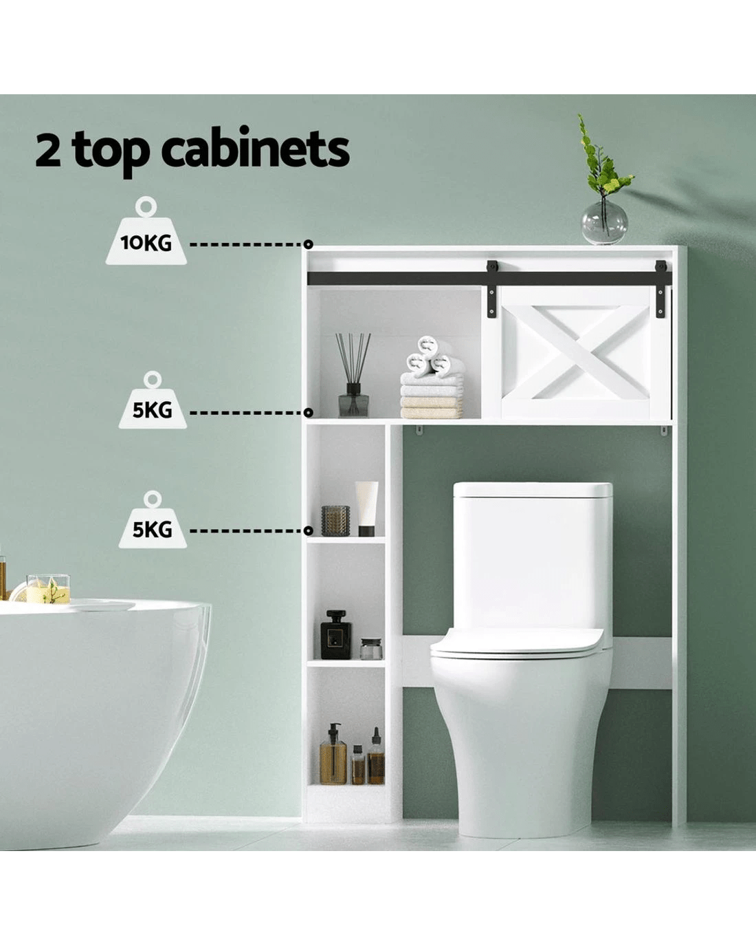 Keep your bathroom organised with an Artiss Bathroom Storage Cabinet. This neat and tidy storage solution is made from durable particleboard for long-lasting use. With three tiers of open shelving and two top cabinets with a sliding barn door, the unit gives you plenty of storage for your bathroom essentials. The entire piece sits neatly over standard toilets, or you can place it over your laundry basket or other storage for ultimate convenience. Easy to install and easy to clean, the Artiss Bathroom Storage Cabinet is just what your bathroom needs to stay tidy.