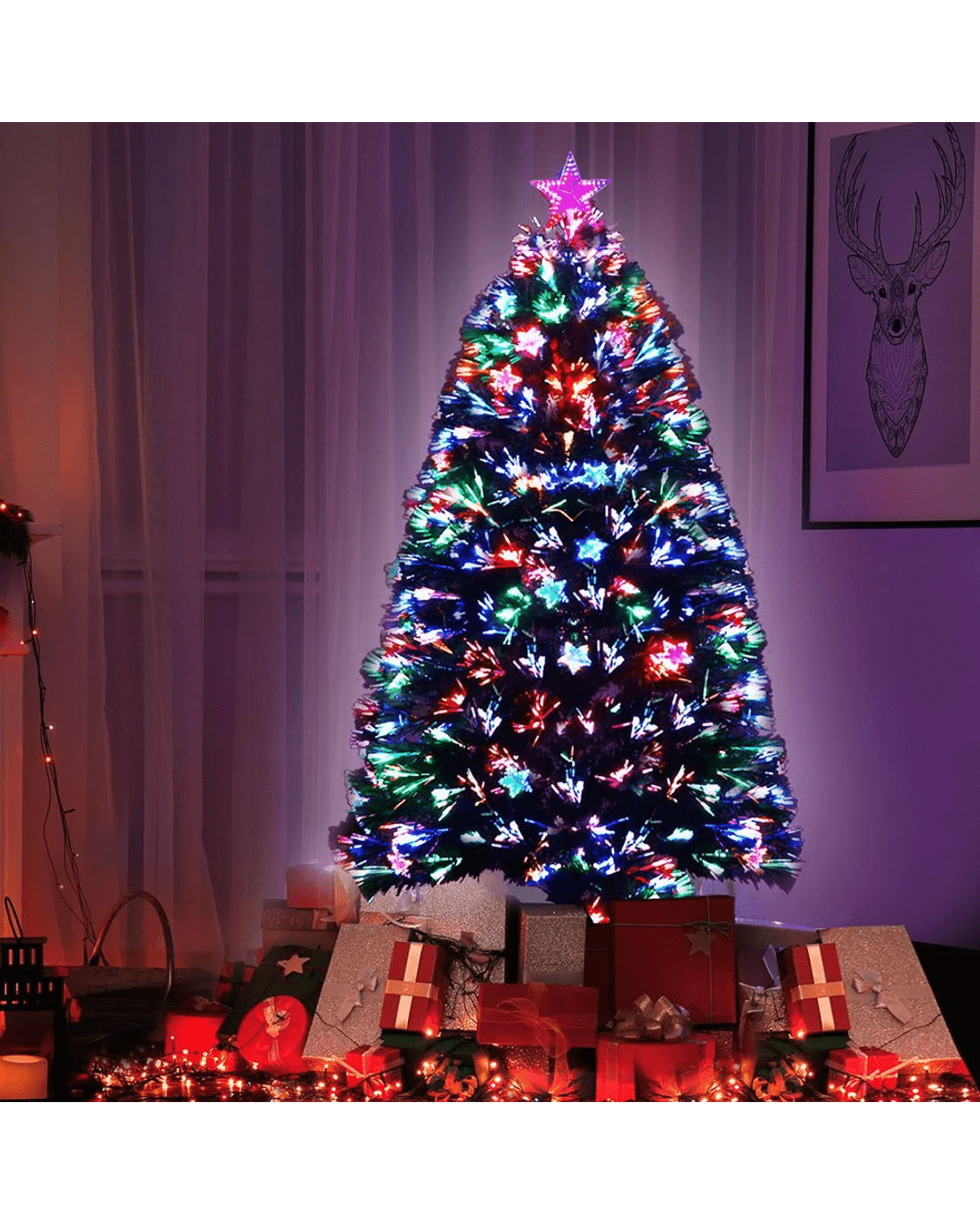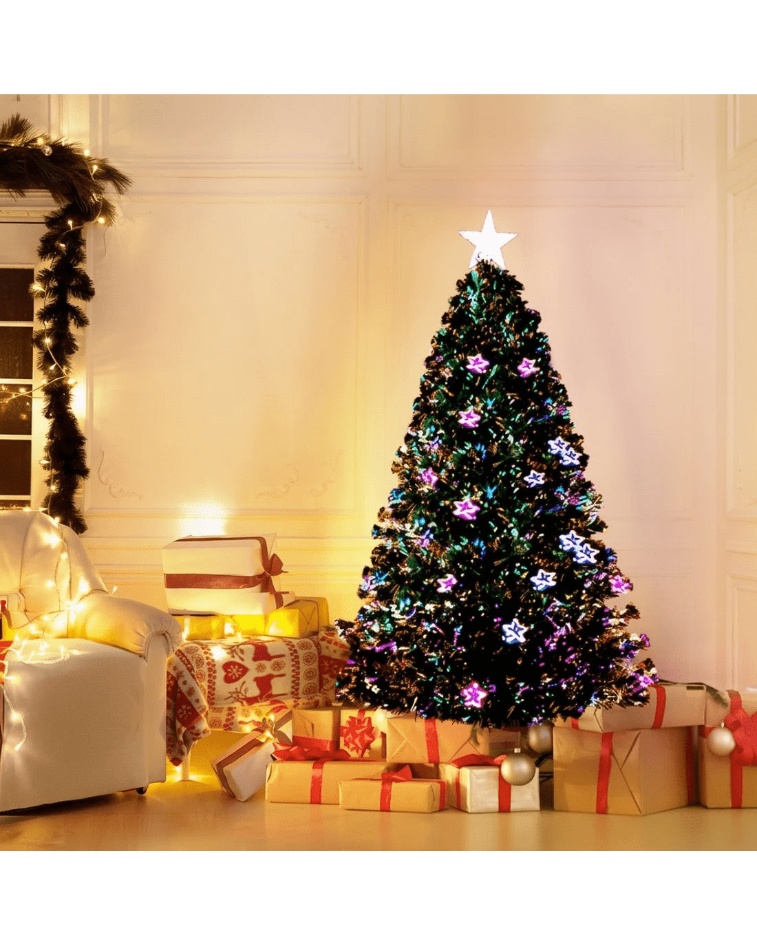 Sold by Aisle SixJingle Jollys 1.5m Christmas Tree Optic Fibre LED Xmas tree Multi Colour - Green