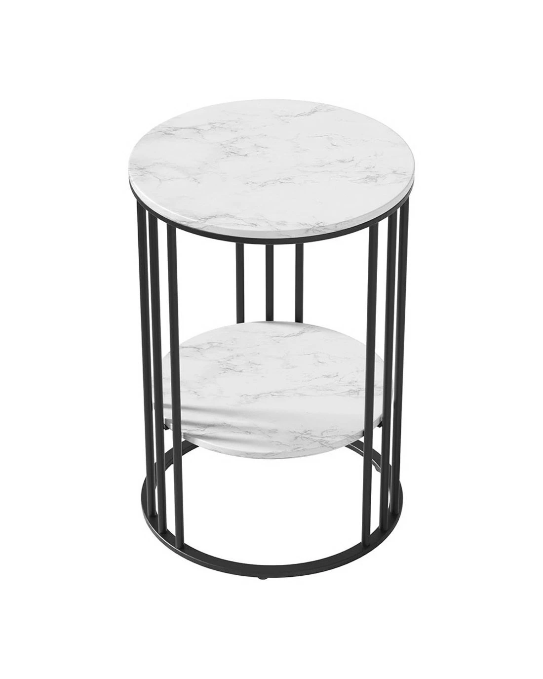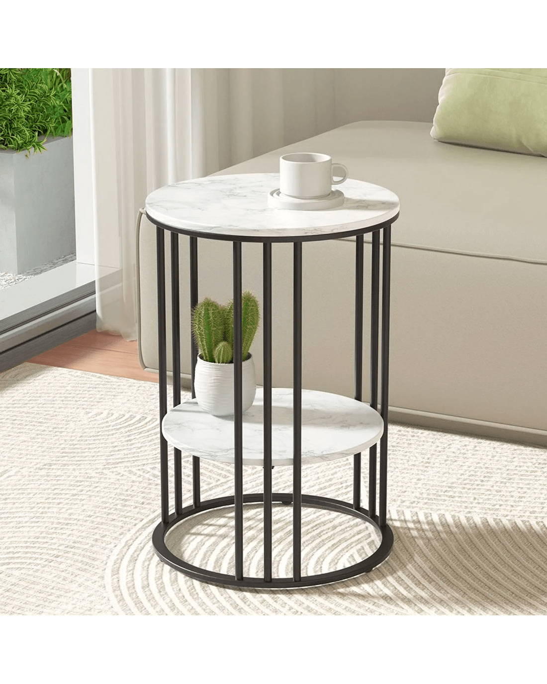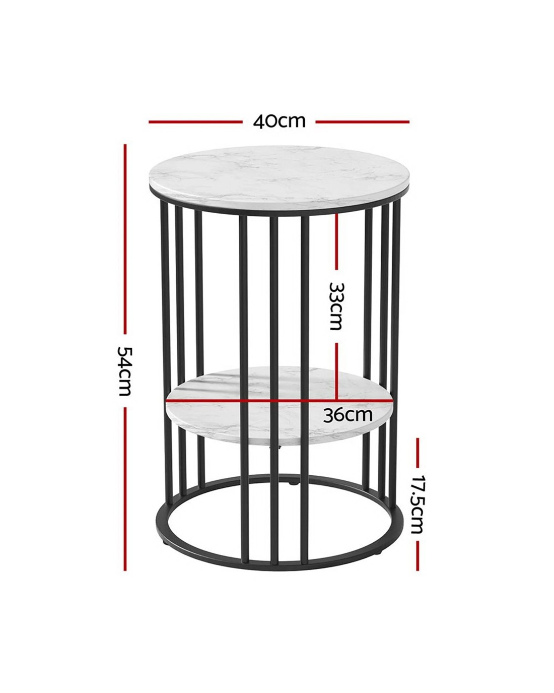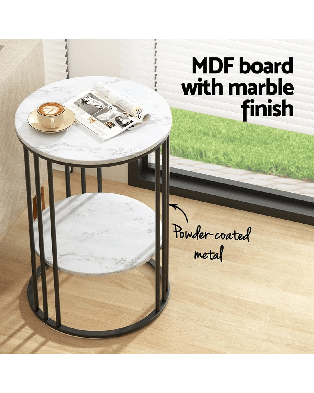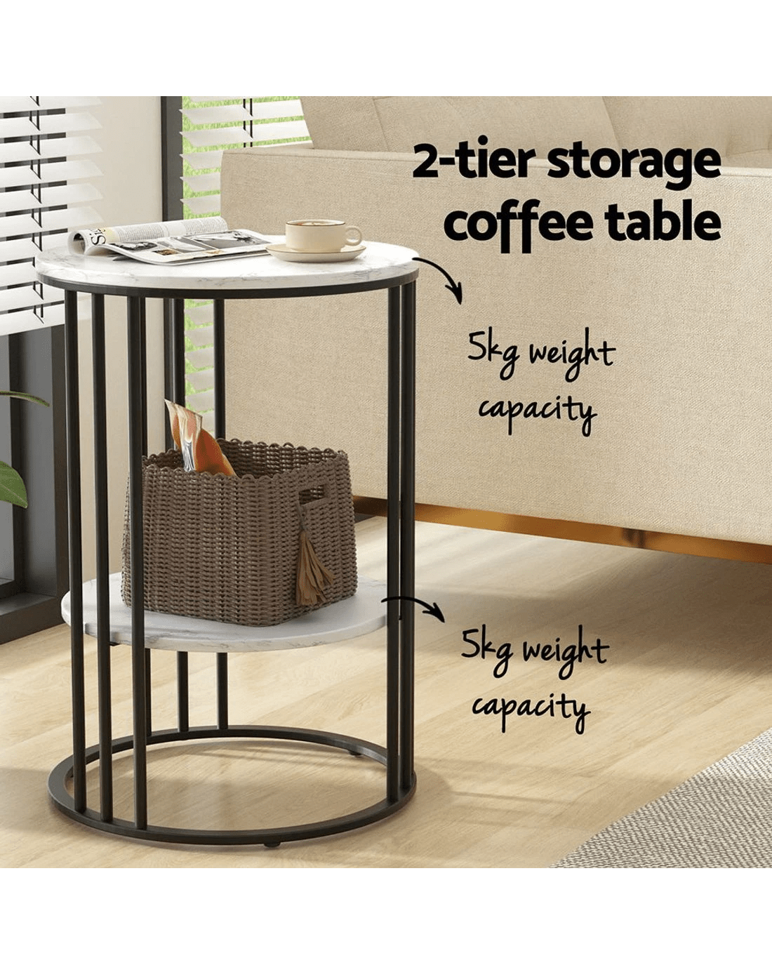 Artiss Coffee Table 2-Tier Round Marble Effect - White