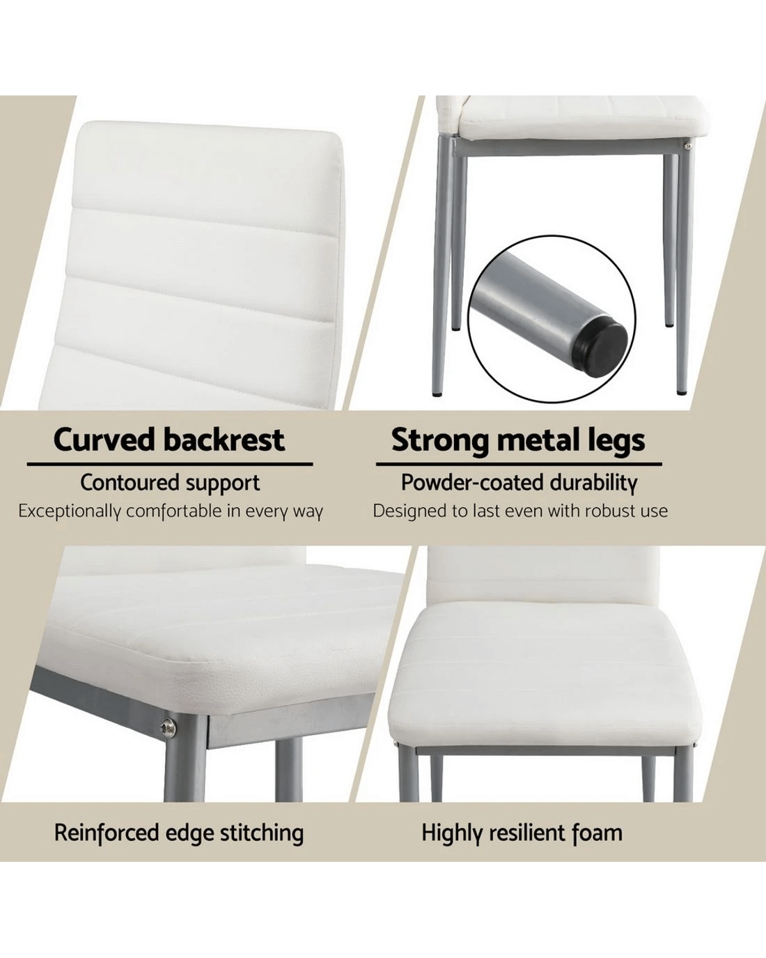 Artiss Dining Chairs Set of 4 Leather Channel Tufted - White