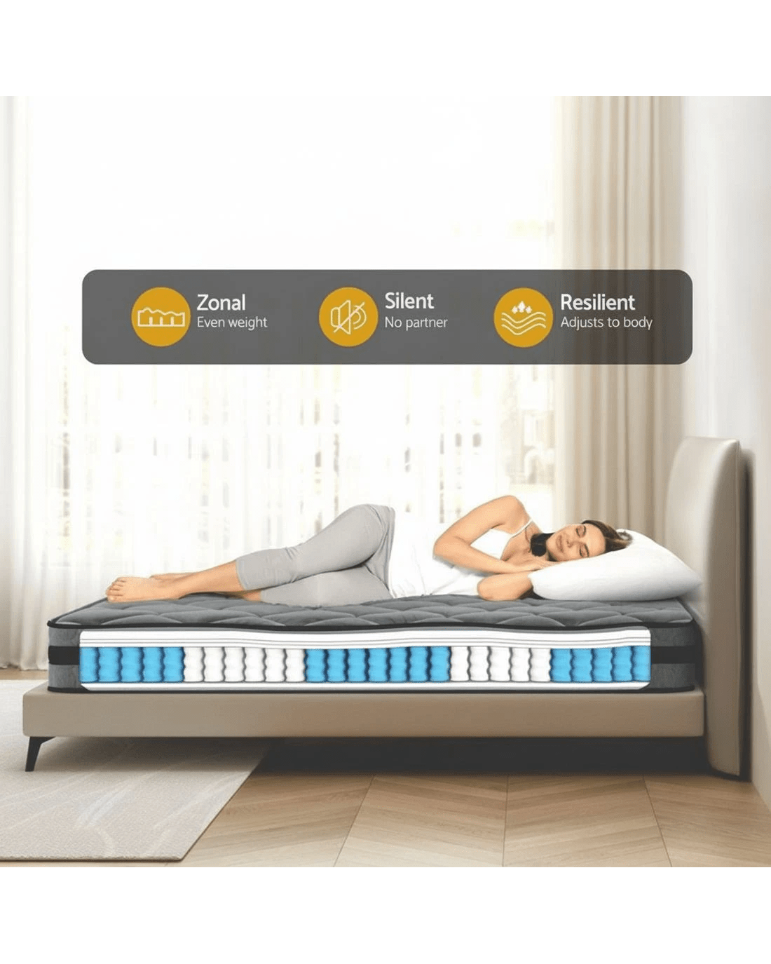Pamper yourself with our Giselle Bedding Wendell Series Pocket Spring Mattress that will give you a soothing sleep night after night. Built upon layer upon layer of quality materials, the 22cm thick mattress is a testament to fine craftsmanship and innovative sleep technology. You will find everything you desire for a mattress. Ultra-comfort with its soft and smooth Belgium knitted fabric. Comprehensive support from its innovative 5-zone EvenZon pocket spring system with zero partner disturbance. And a medium firmness that many Australians love. At the core of the mattress lies independent 6-coil pocket springs, enveloped by high-density egg-shaped foam with a soft quilting layer resting atop. Not least, the mattress is hygienically constructed to free your body from allergens and dust mites. Better sleep is not just a dream. It is a reality with our luxurious pocket spring mattress.