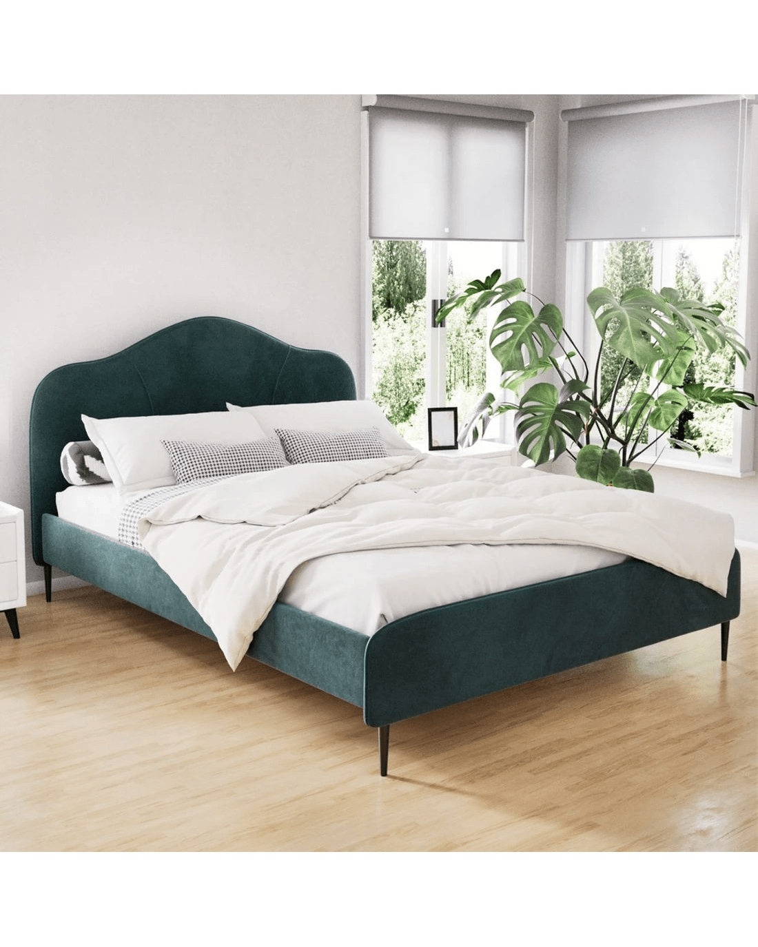 Sold by Aisle SixArtiss Bed Frame Queen Size Velvet Dark Green OLAN - Green
