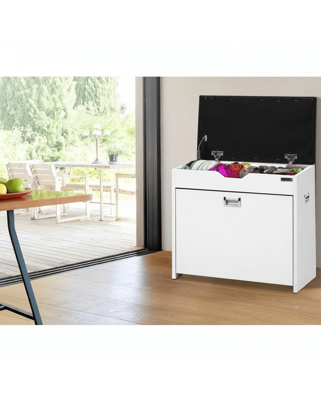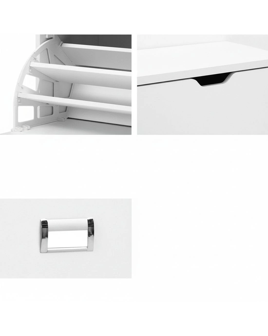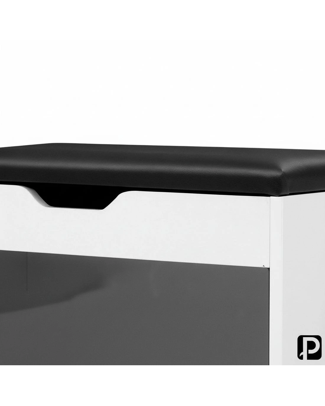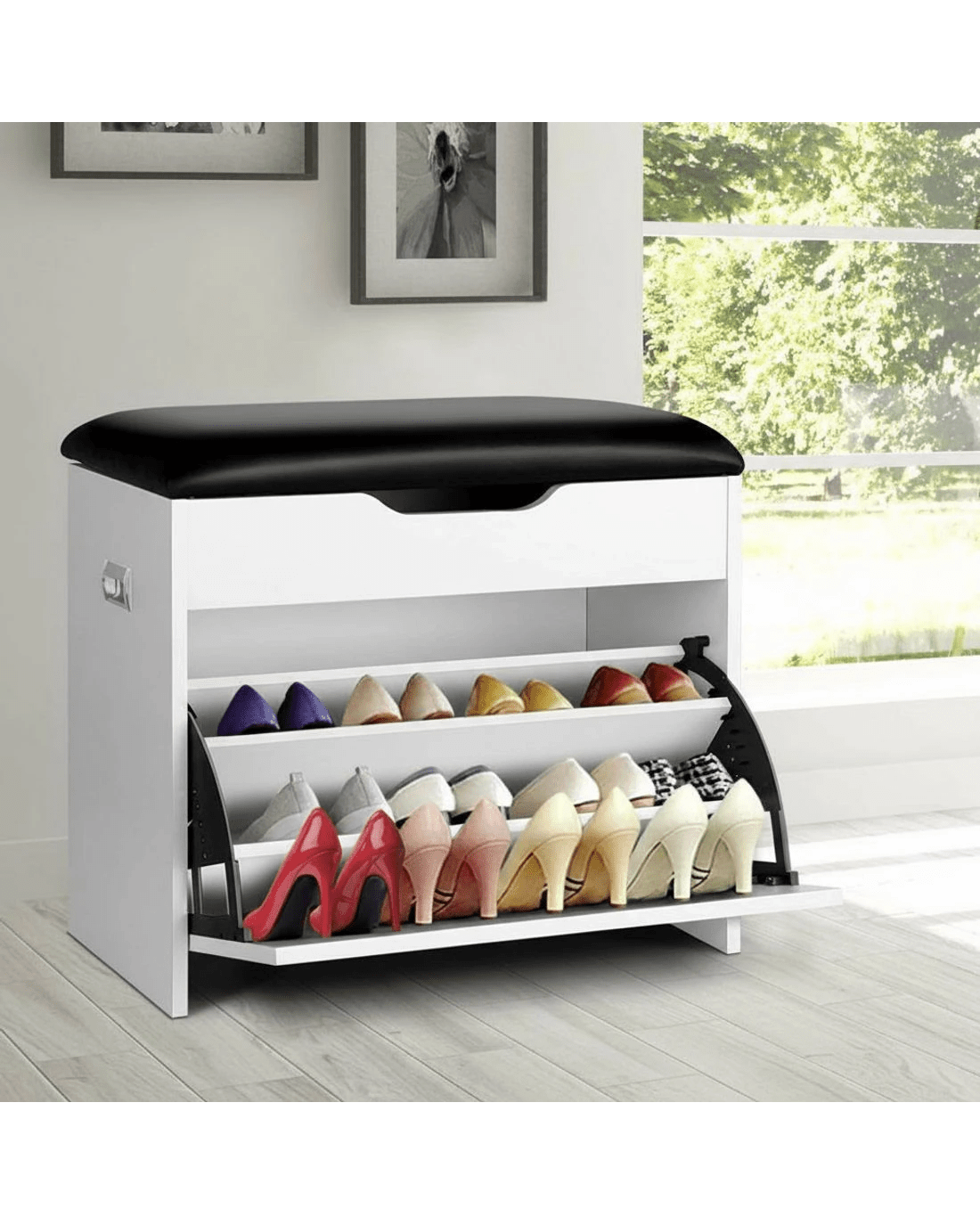 Get yourself a shoe cabinet with an aesthetic difference. Our Artiss Shoe Cabinet Bench adds a touch of luxury and multi-functionality to the ubiquitous shoe cabinet. On first impression, it looks just like a plush PU leather stool. Pull down the front panel and you find three tiers of adjustable shoe shelves with ample space for up to 15 pairs of various footwear. There is also a closed storage compartment hidden under the seat, with cut-out handles for easy opening. Made from quality particle board, the bench is sturdy and finished in melamine for durability and easy maintenance. Not least, its thoughtful design means that you can place it in your hallway or entrance for a neat and tidy look that blends seamlessly with your home decor. So remove the clutter and get organised with our shoe cabinet bench. We are sure it will feet right in with your discerning taste for all things stylish and chic.