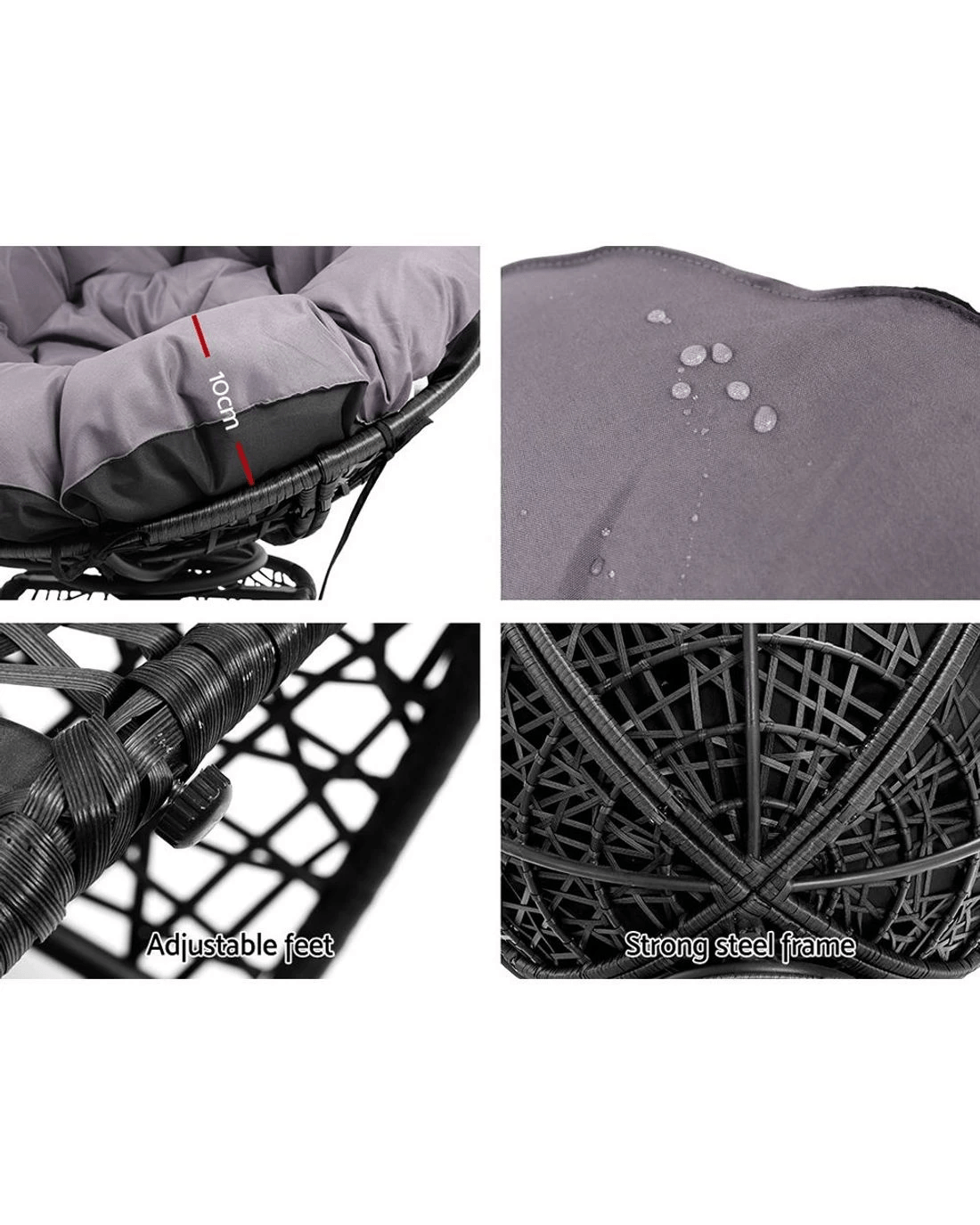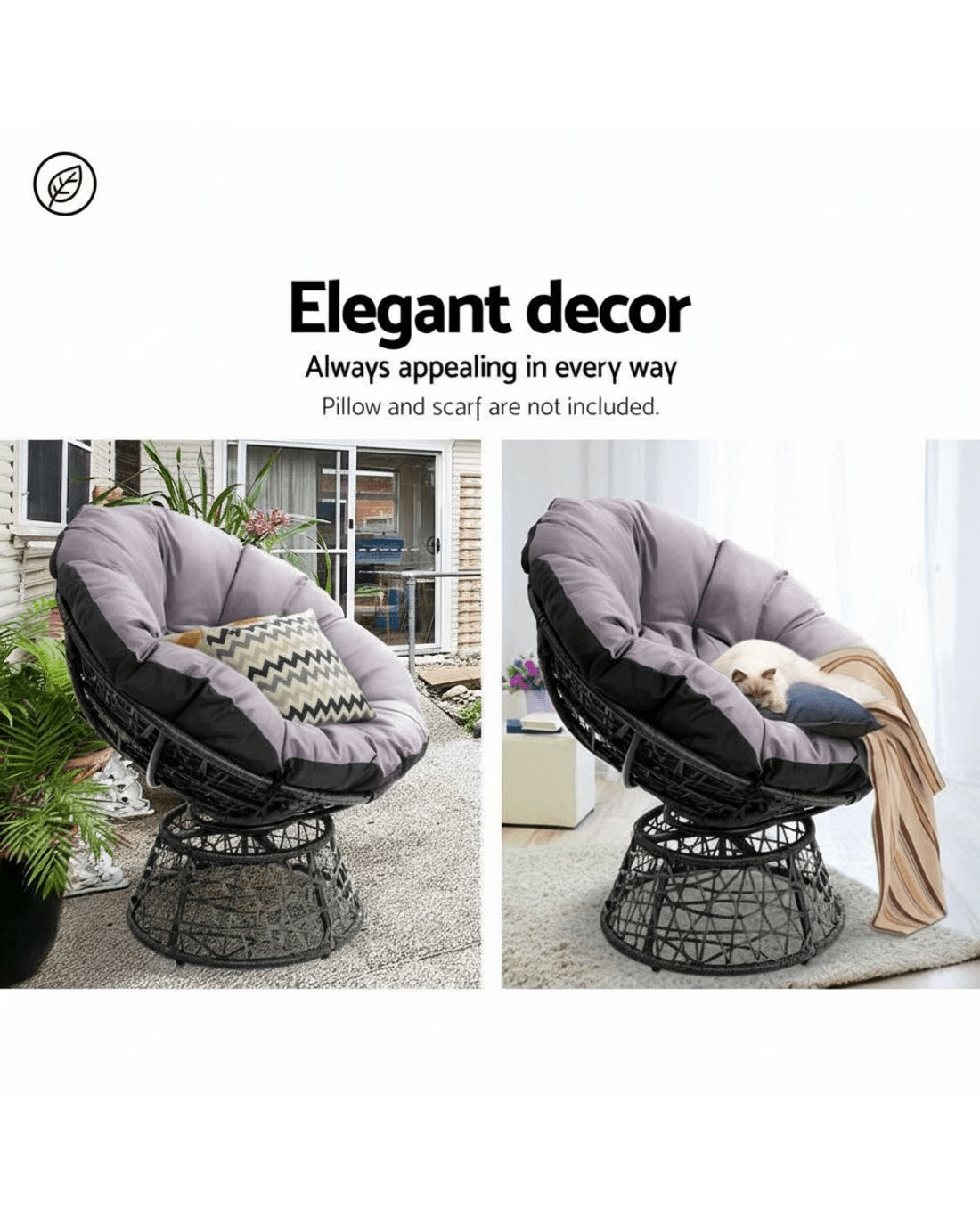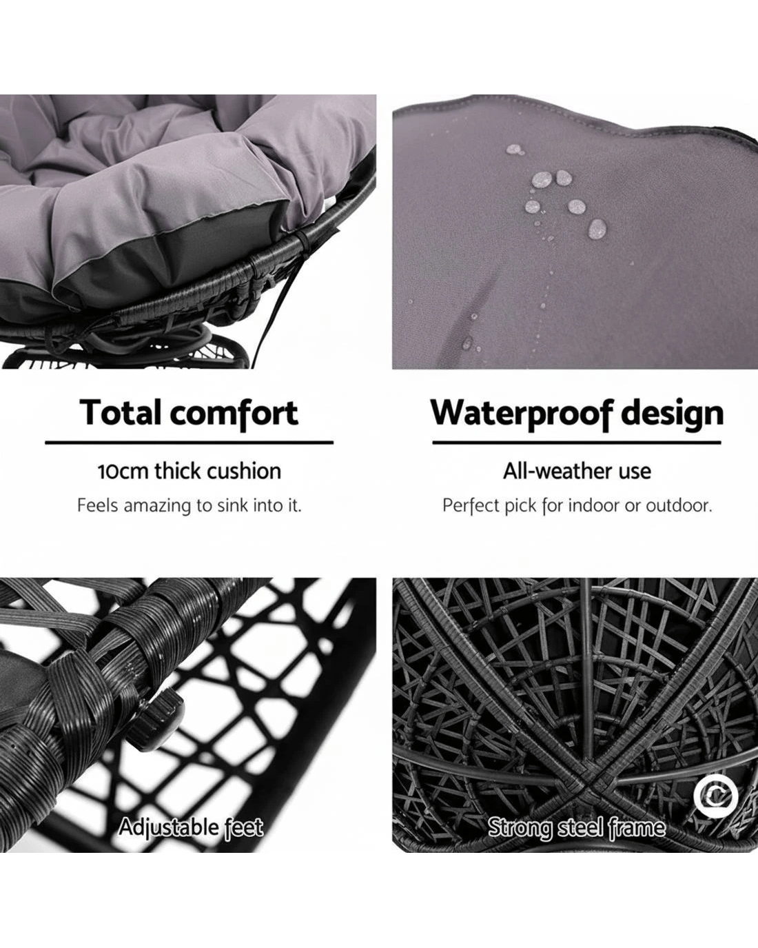 Indulge in pampered comfort with the Gardeon Papasan Chair. A rotund PE-wicker chair that comes with a thick luscious 10cm padding that is perfect for use indoors or outdoors, summer or winter. With intricate wicker weaving around a durable steel frame, the Papasan Chair is meticulously crafted to bring out its unique style and strength. The chair can be rotated all round for easy facing in any direction. Not least, the covers are UV-resistant and removable for easy cleaning.