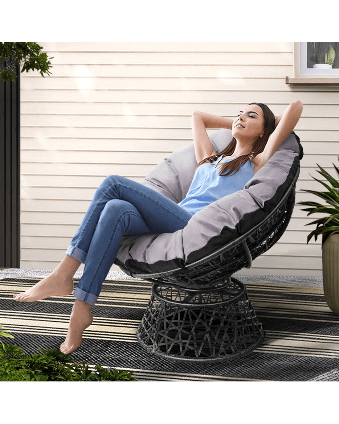 Sold by Aisle SixGardeon Outdoor Chairs Outdoor Furniture Papasan Chair Wicker Patio Garden - Black