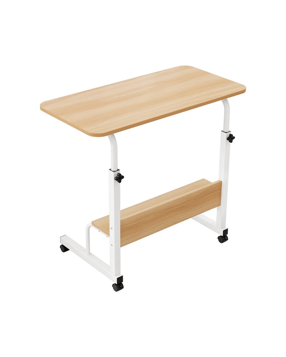 Enjoy customized comfort with dual-knob height adjustment, making it ideal for both sitting and standing positions. The large, smooth surface provides ample space for laptops, while the open storage shelf with baffle keeps essentials organized and within reach.