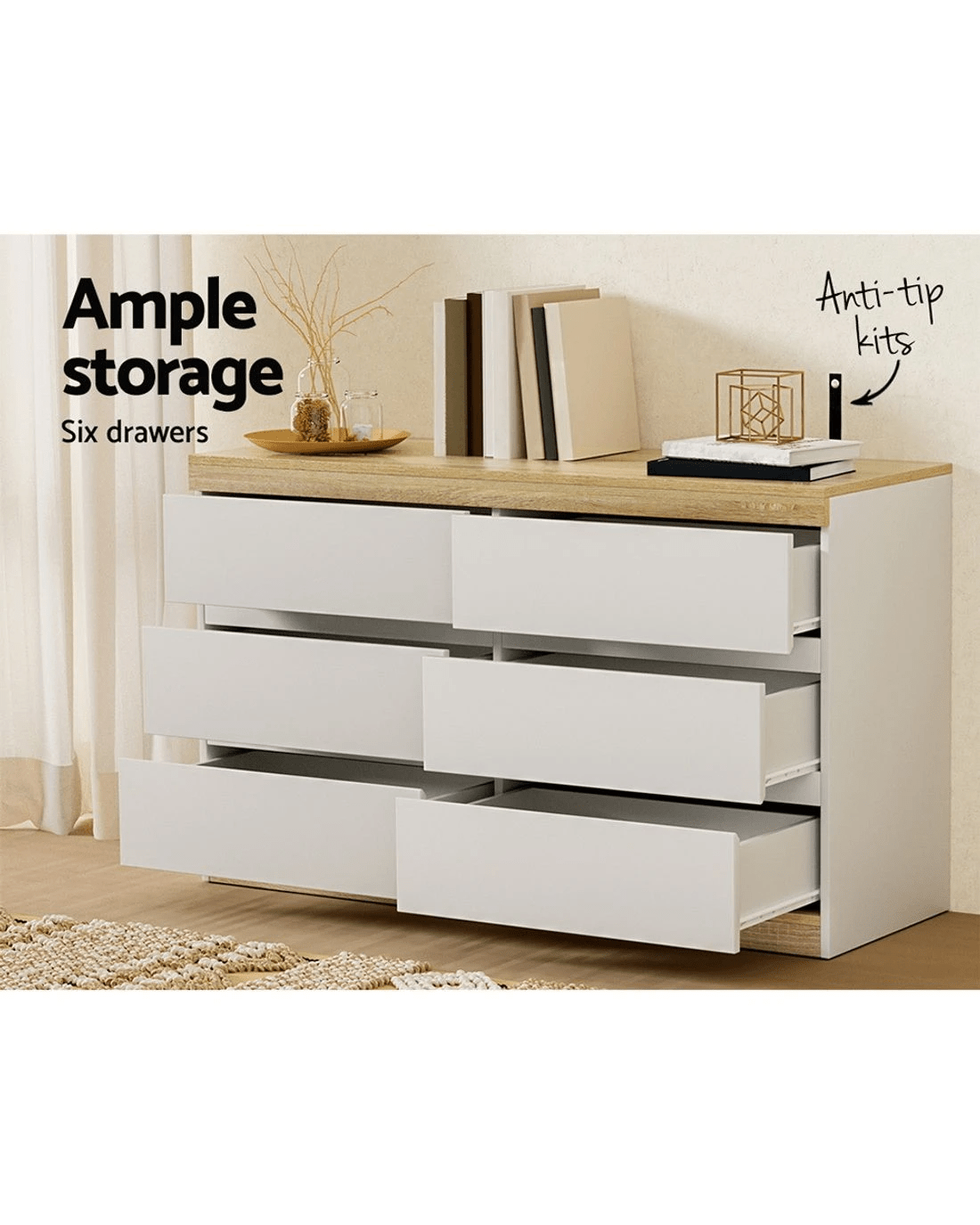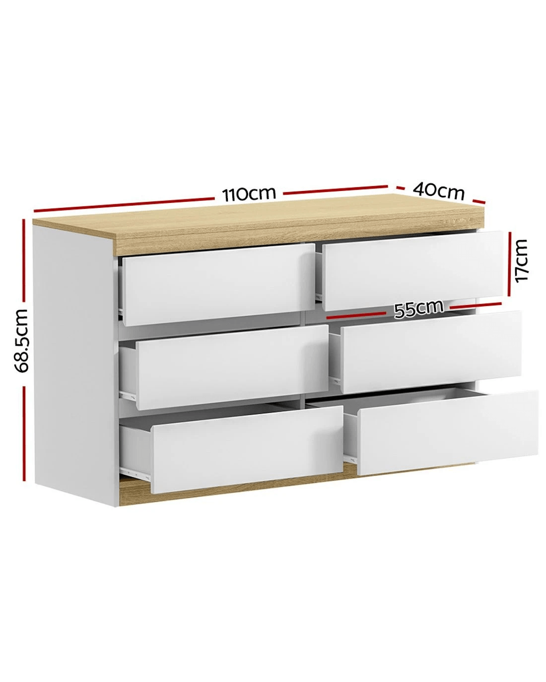 Introducing our Artiss Chest of Drawers. With six spacious drawers, each fitted with a smooth glide mechanism, it provides ample storage to keep your space organized and clutter-free. This chest of drawers, offering a blend of style and utility, is an unmissable addition to your furniture ensemble.