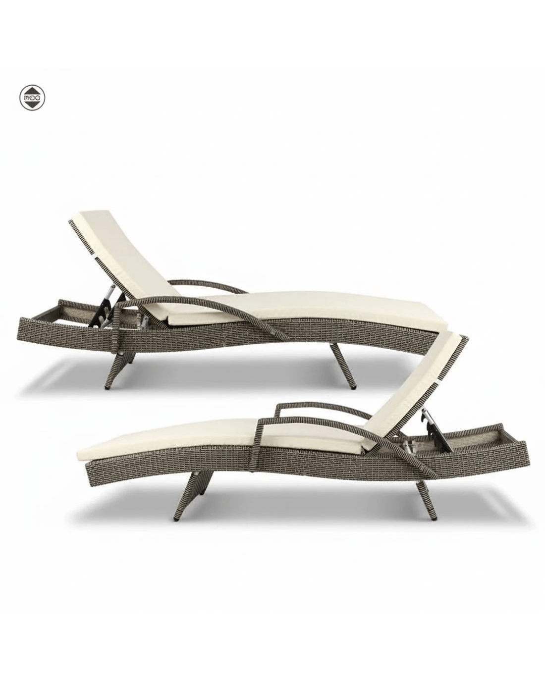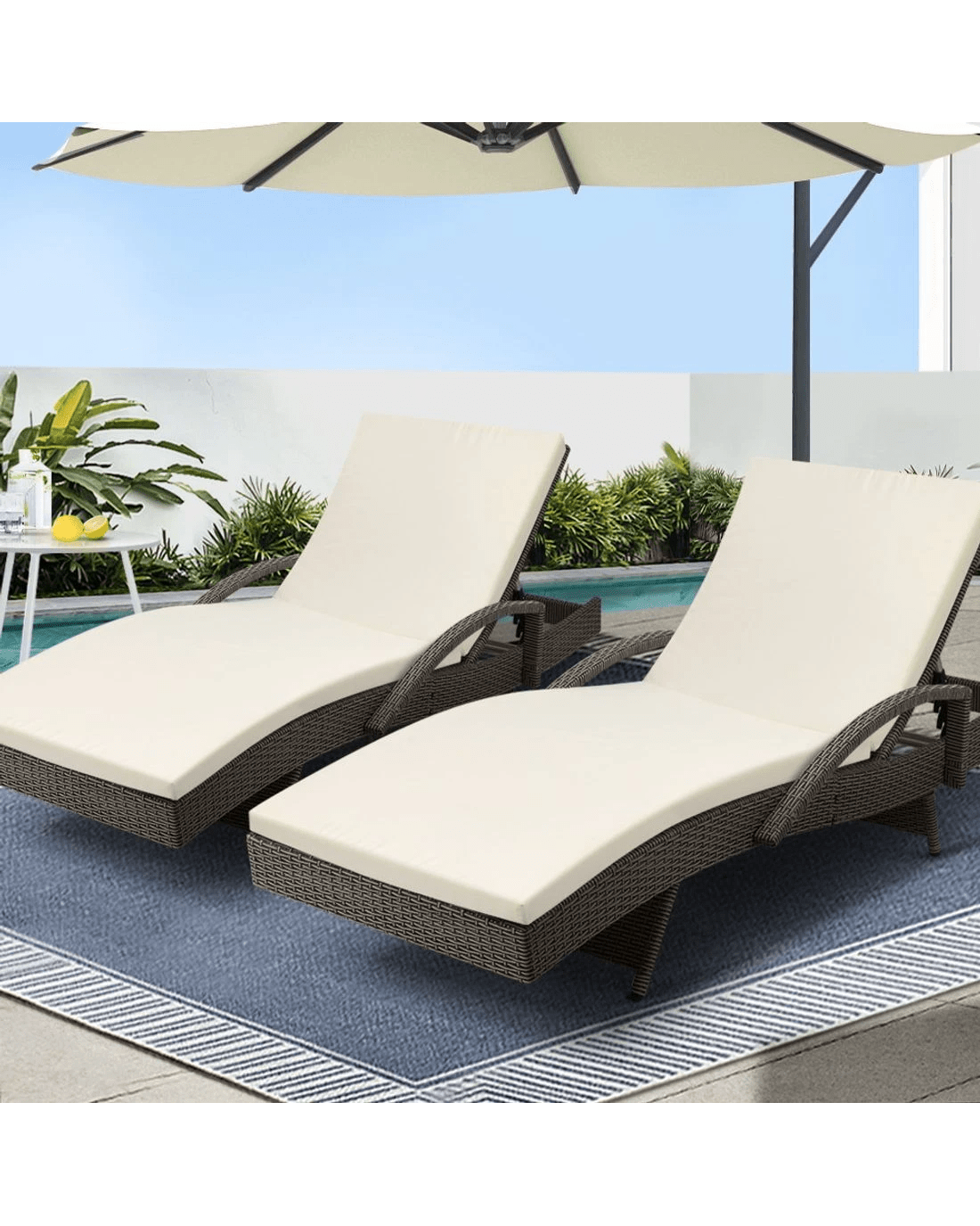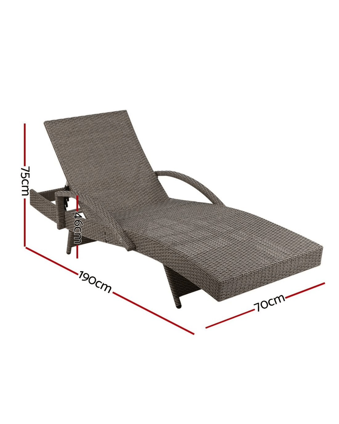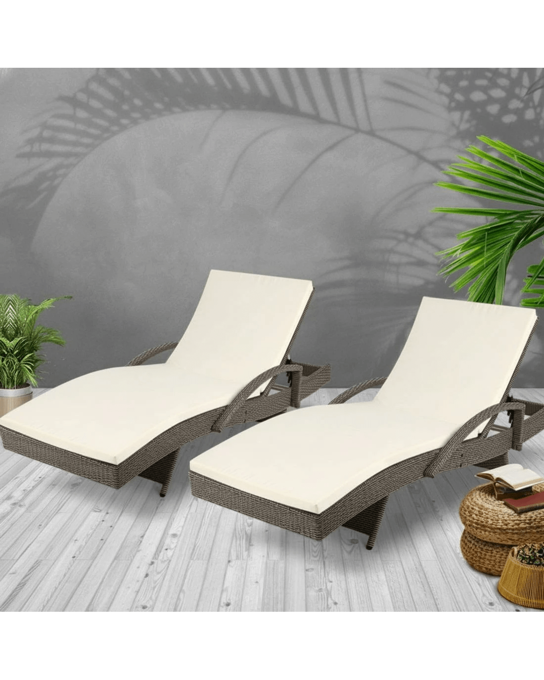 Sold by Aisle SixGardeon 2PC Sun Lounge Wicker Lounger Outdoor Furniture Beach Chair Adjustable Cushion - Grey