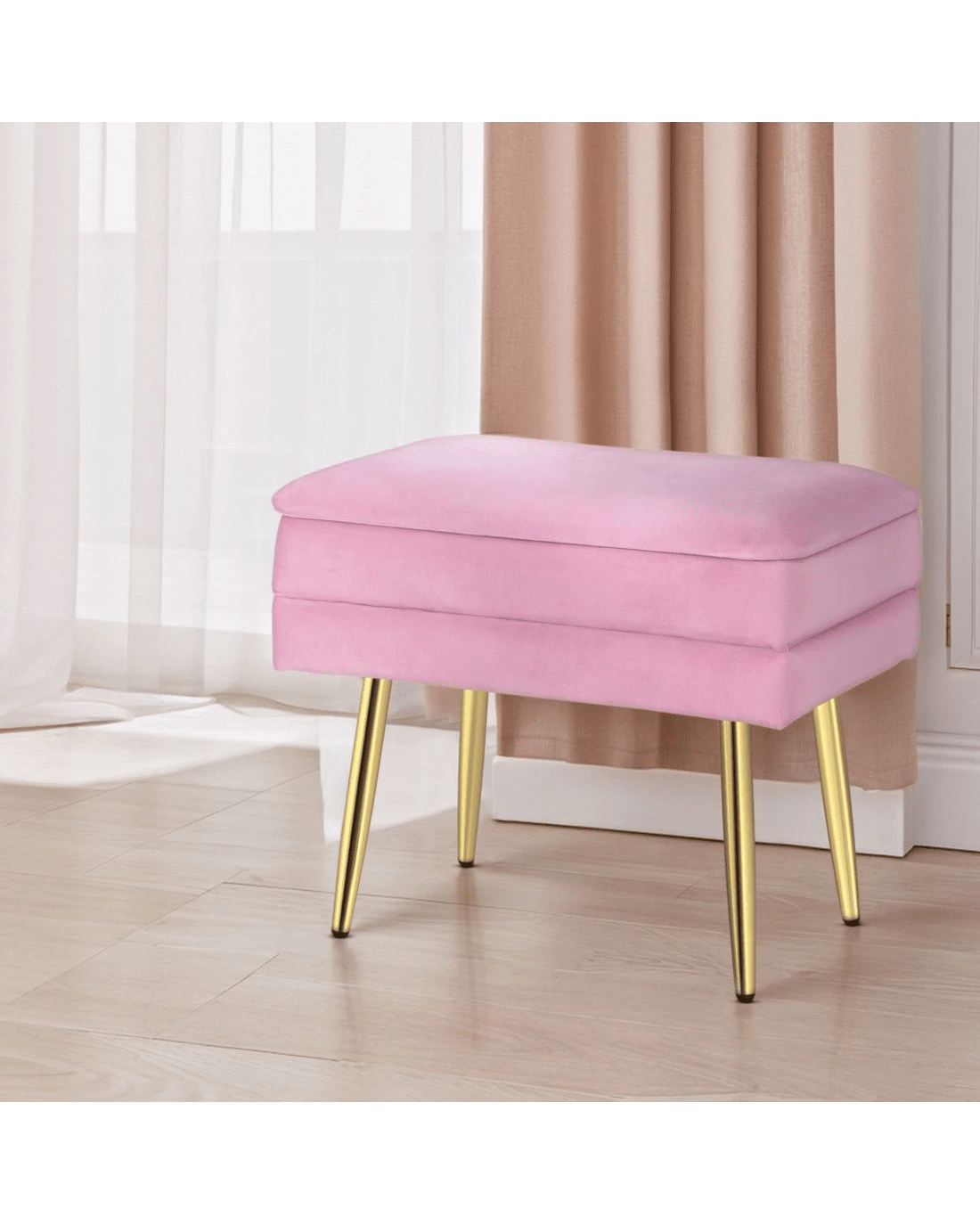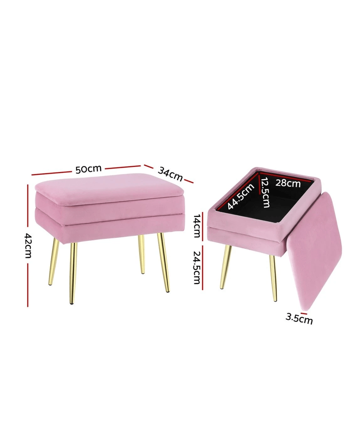 Add a luxury touch to your living room with an Artiss Amot Foot Stool. With an elegant high-resilience foam seat and upholstered in premium velvet, our footstool is the perfect place to rest your feet and adds a plush touch to any home. Acting as a seat or stool, it also creates a neat storage space for your home essentials. The detachable lid provides easy access to the storage space while the contemporary gold metal legs add a touch of glamour. With floor protectors, the stool prevents slipping, tripping, scratches and dents. Without any hesitation, bring home the Artiss Amot footstool today.