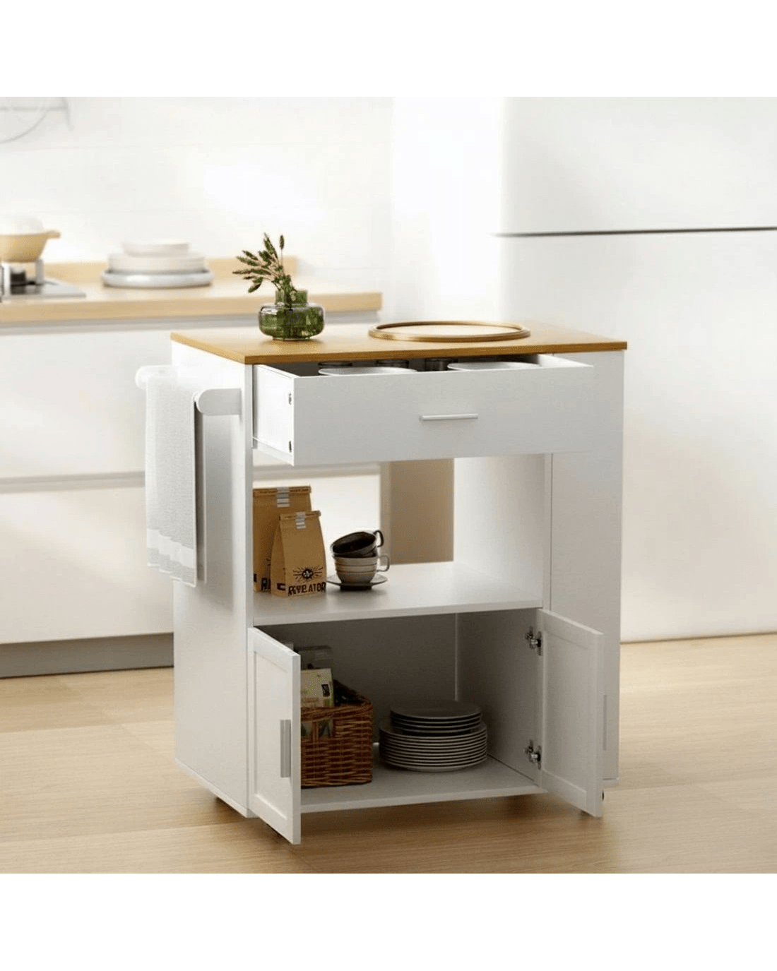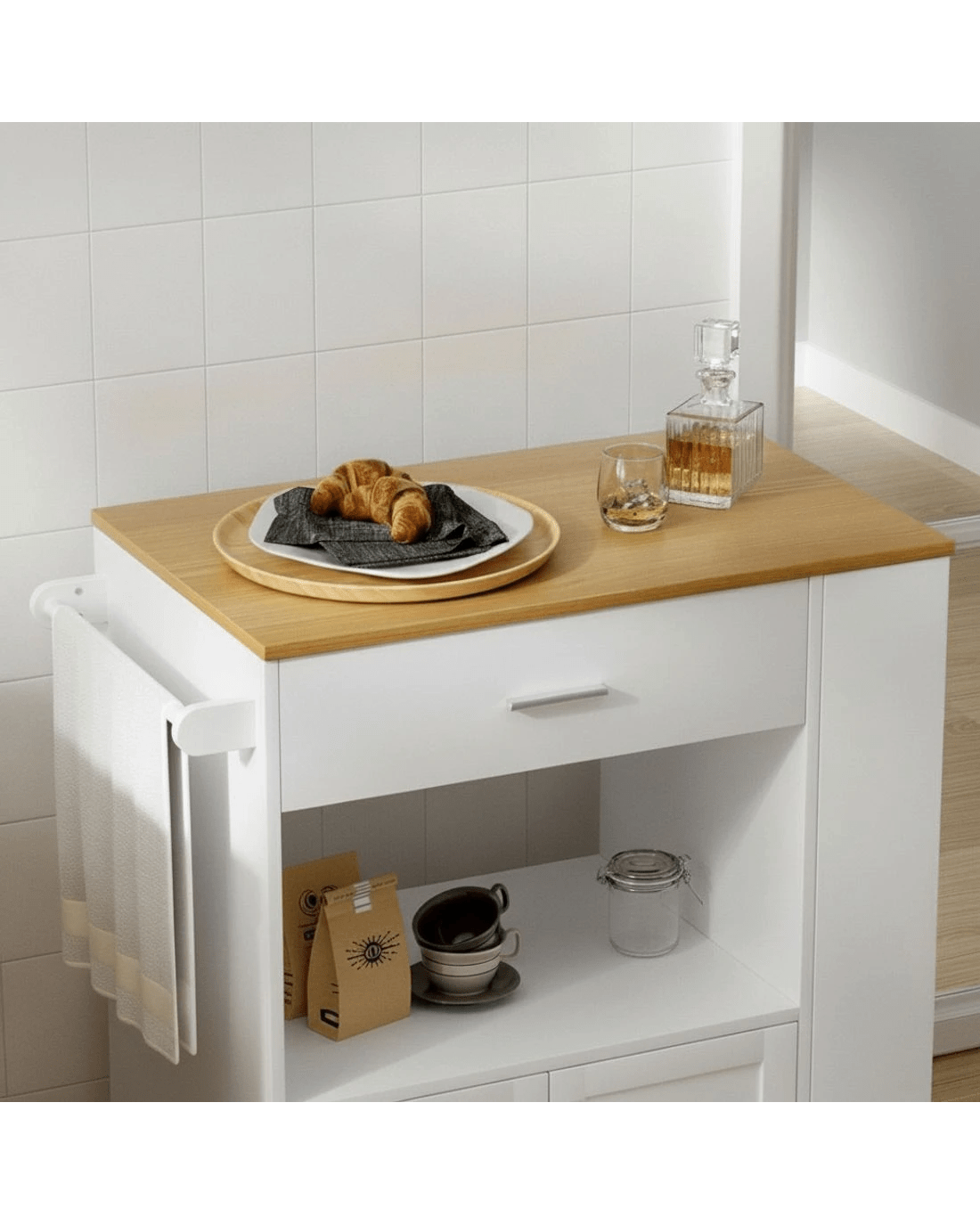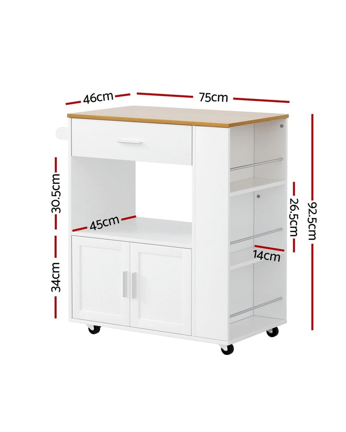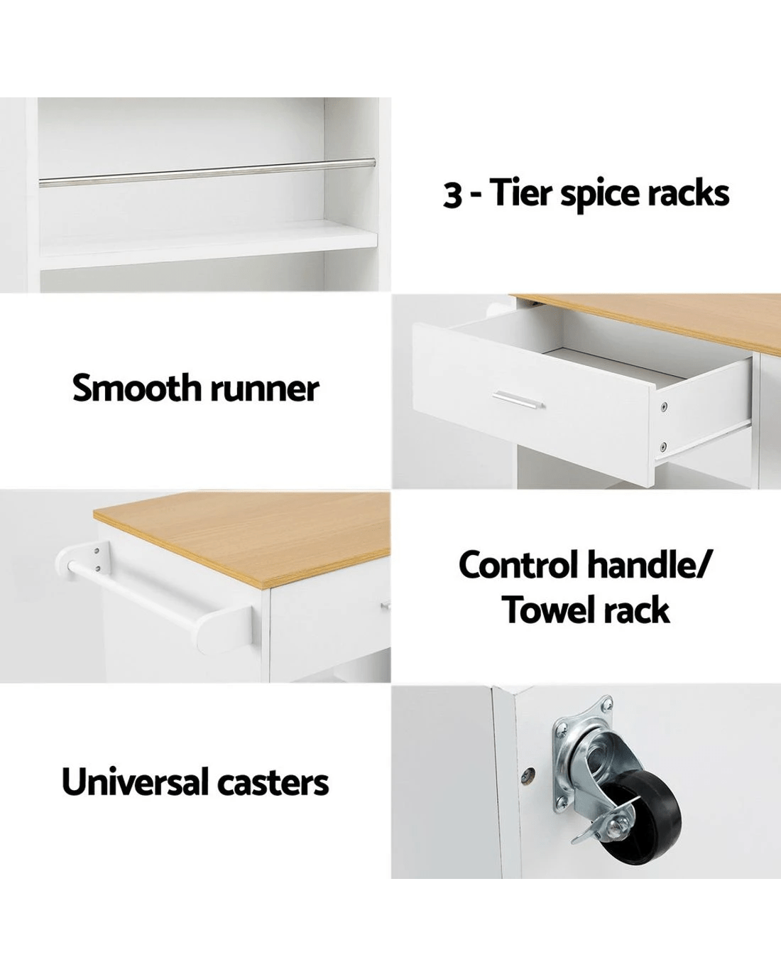 Artiss Kitchen Island Trolley Rolling Serving Cart - White