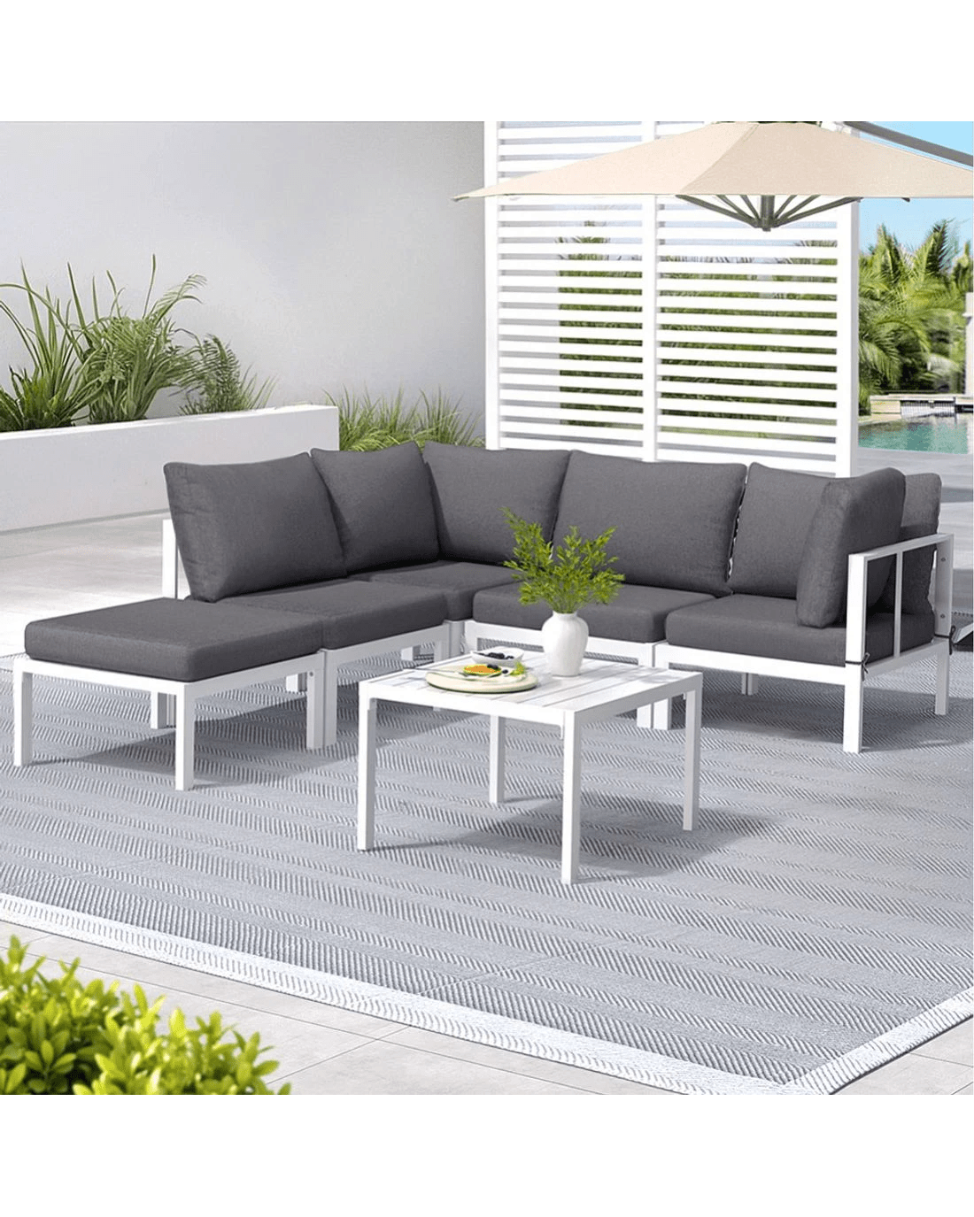 Sold by Aisle SixGardeon 6PCS Outdoor Sofa Set Aluminium Table and Chairs Lounge Patio Furniture - White