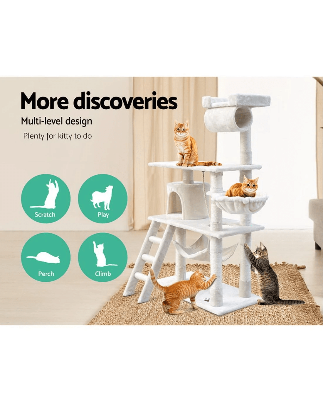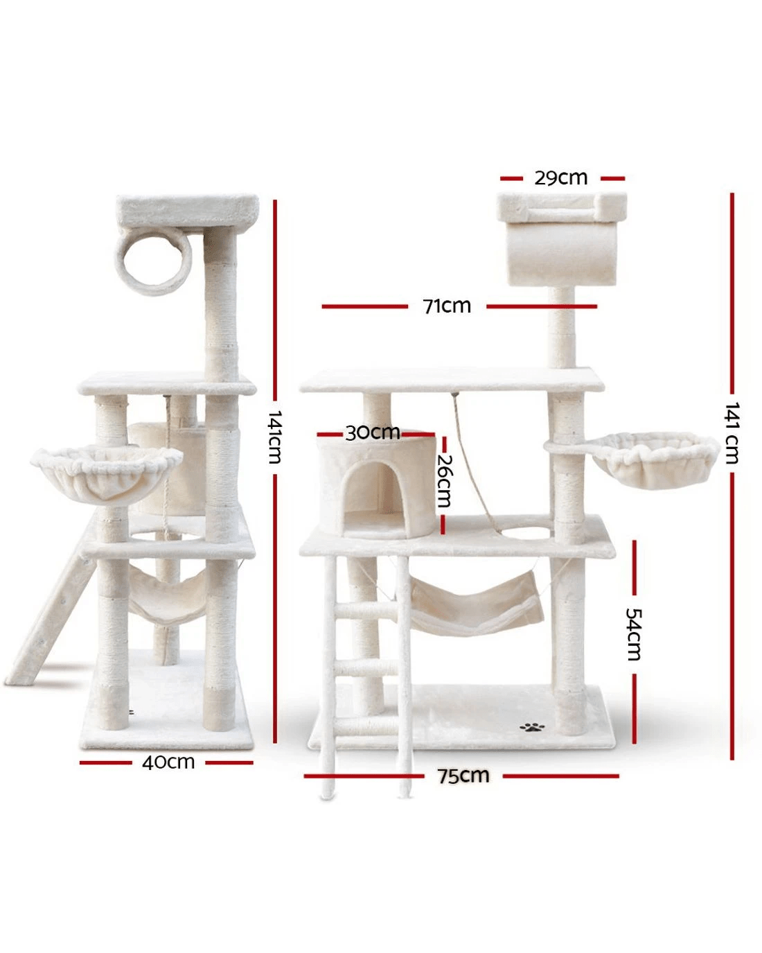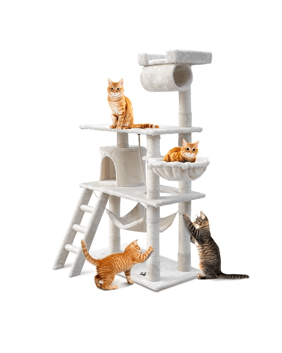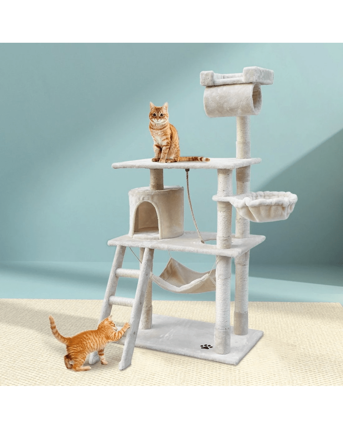 Sold by Aisle Sixi.Pet Cat Tree 141cm Tower Scratching Post Scratcher Condo Wood House Bed Beige - Beige