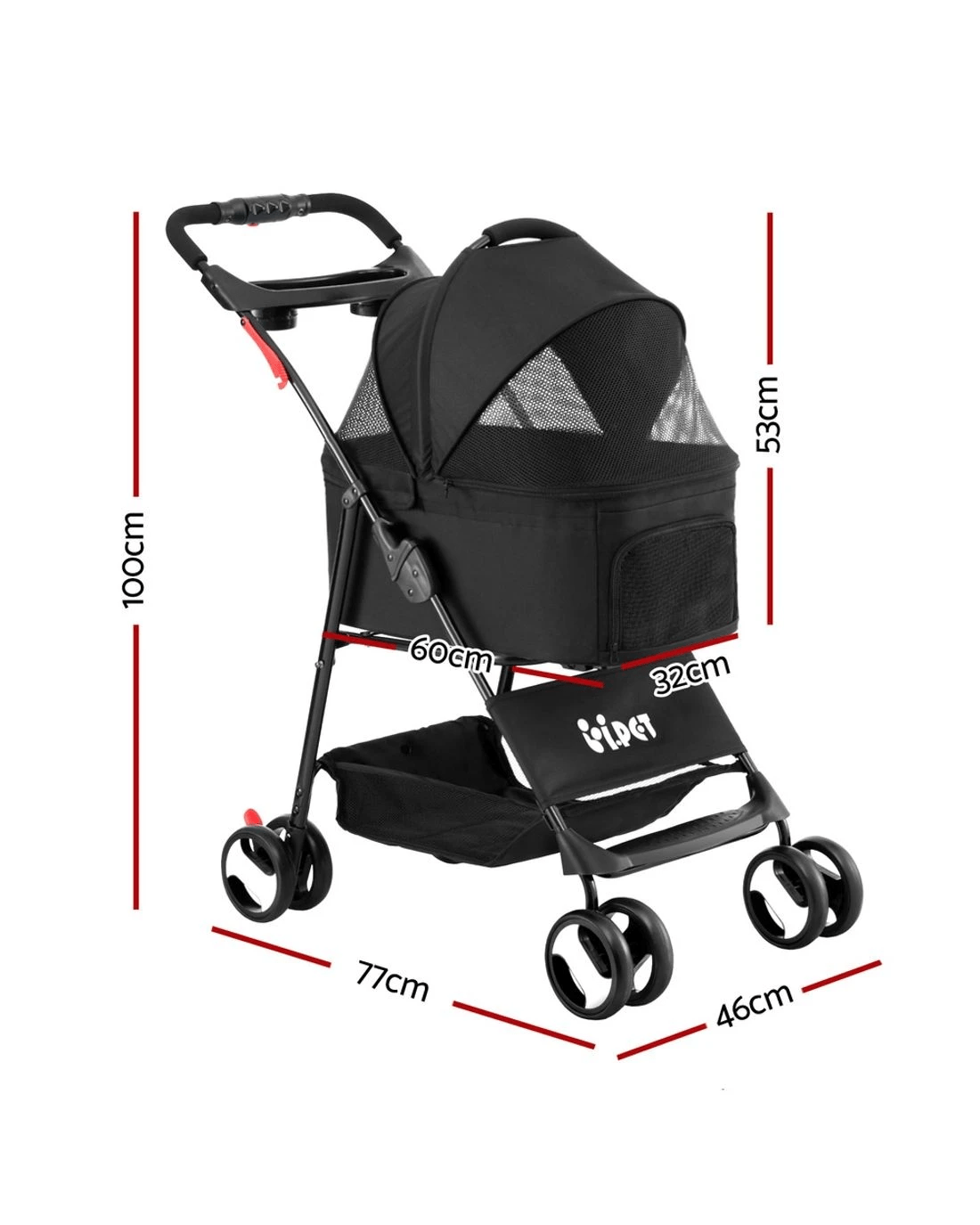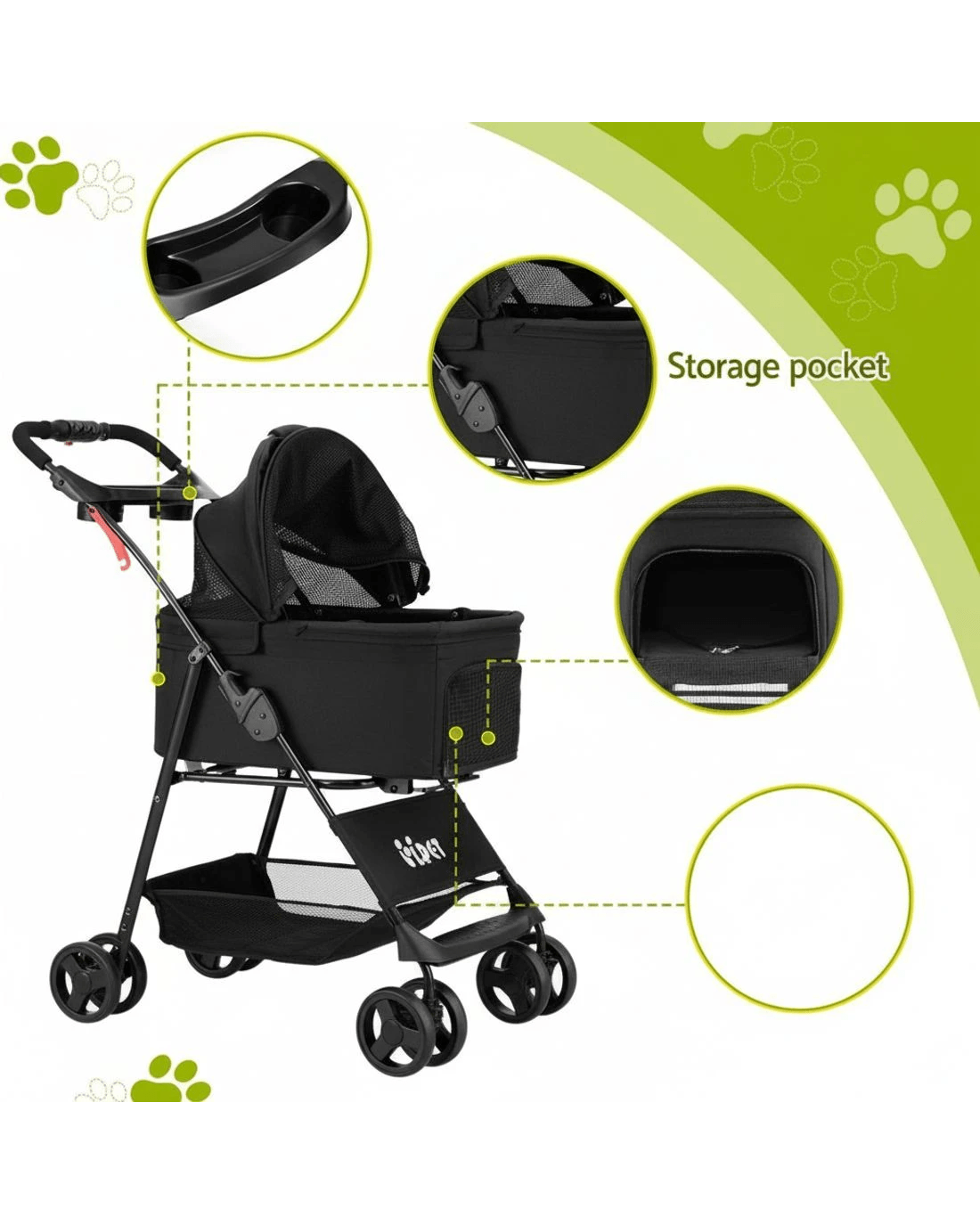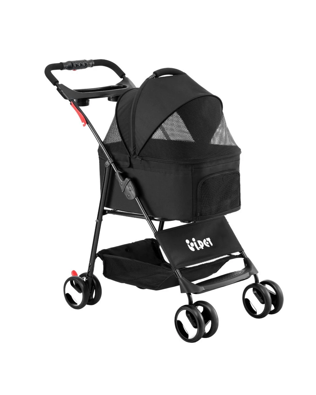 Sold by Aisle Sixi.Pet Pet Stroller Dog Pram Cat Carrier Travel Large Pushchair Foldable 4 Wheels - Black