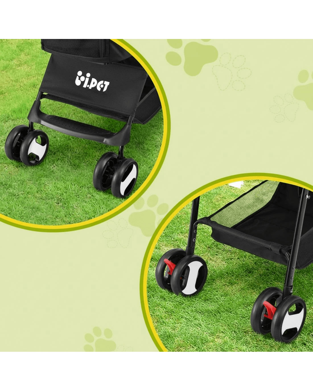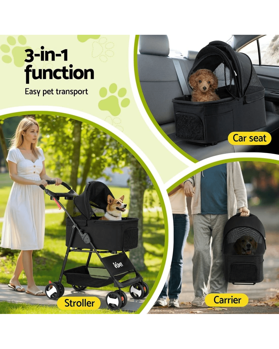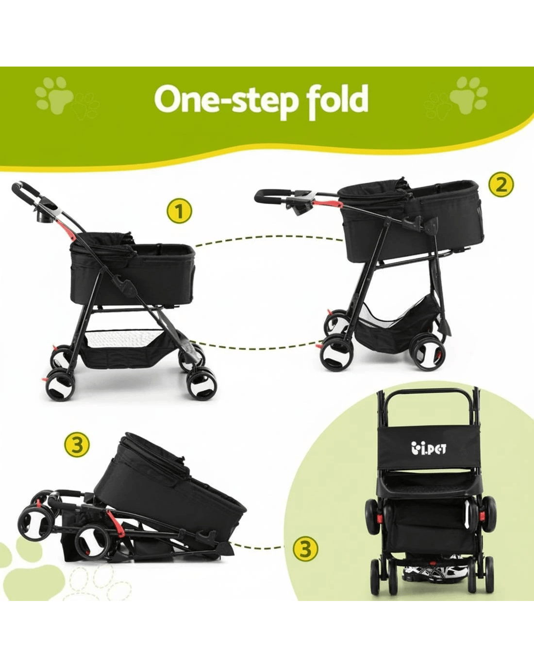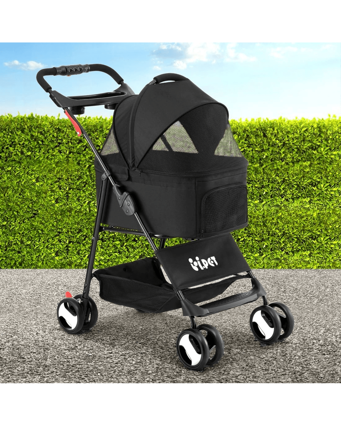 Sold by Aisle Sixi.Pet Pet Stroller Dog Pram Cat Carrier Travel Large Pushchair Foldable 4 Wheels - Black