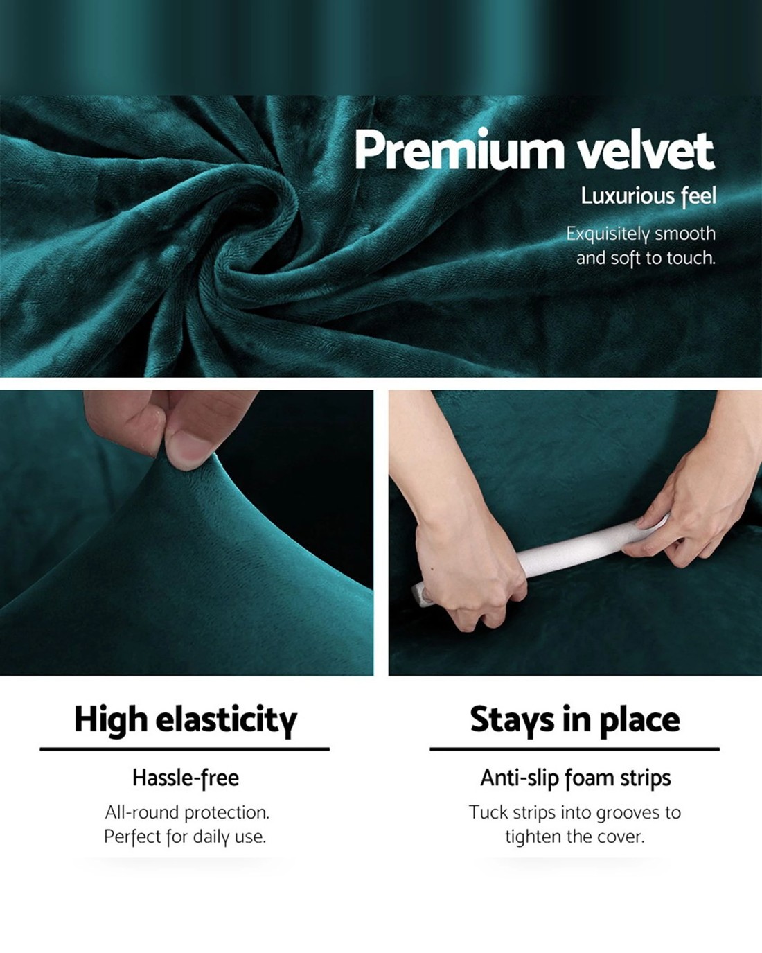 Amp up the look of your sofas with the Artiss range of velvet sofa covers and bid adieu to unpleasant looks! Not just for mere decoration, our stretchable velvet couch covers do a fantastic job offering an all-around protection to your furniture. Whether it's muddy feet, accidental filthy stains and spills, or covered in pet hair, pull it off and pop it in your washing machine to achieve a new-like couch cover for long-lasting use. Sliding and taking off sofa covers is also easy peasy lemon squeezy! Our high stretch velvet couch covers come in crystal velvet, and with anti-slip foam strips, you can get a good, taut fit and hold it in place. An effortless way to give your favourite but worn-out sofa a quick facelift without any hassle. Purchase Artiss' velvet sofa covers now!
