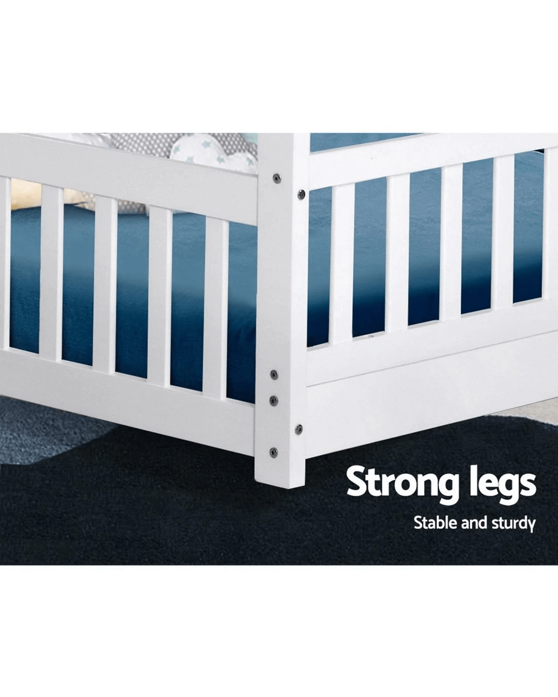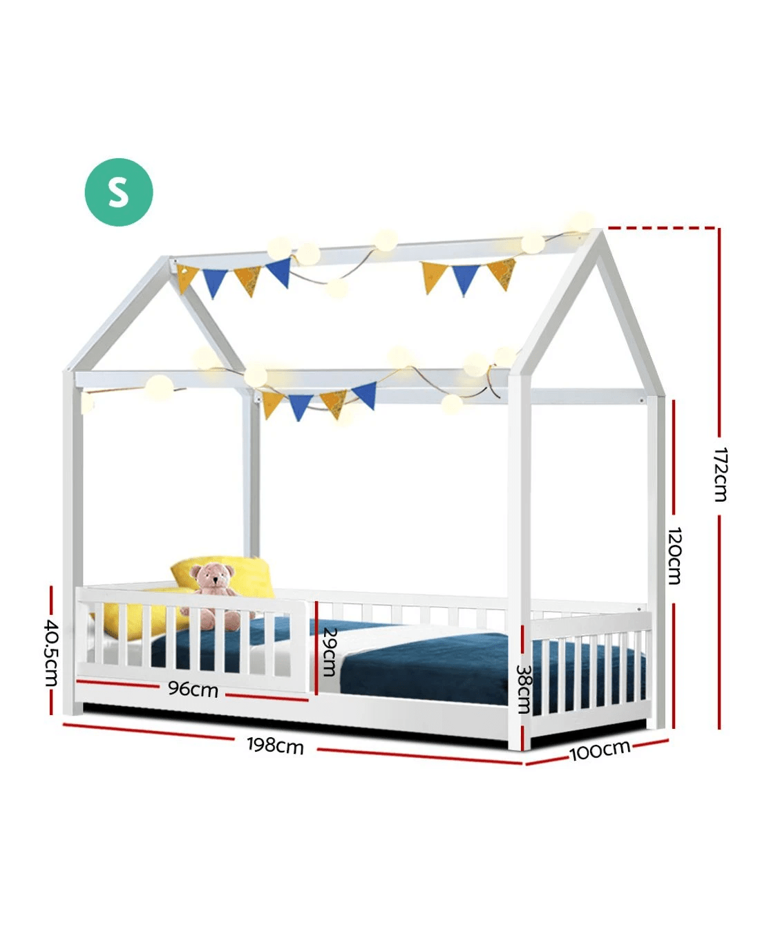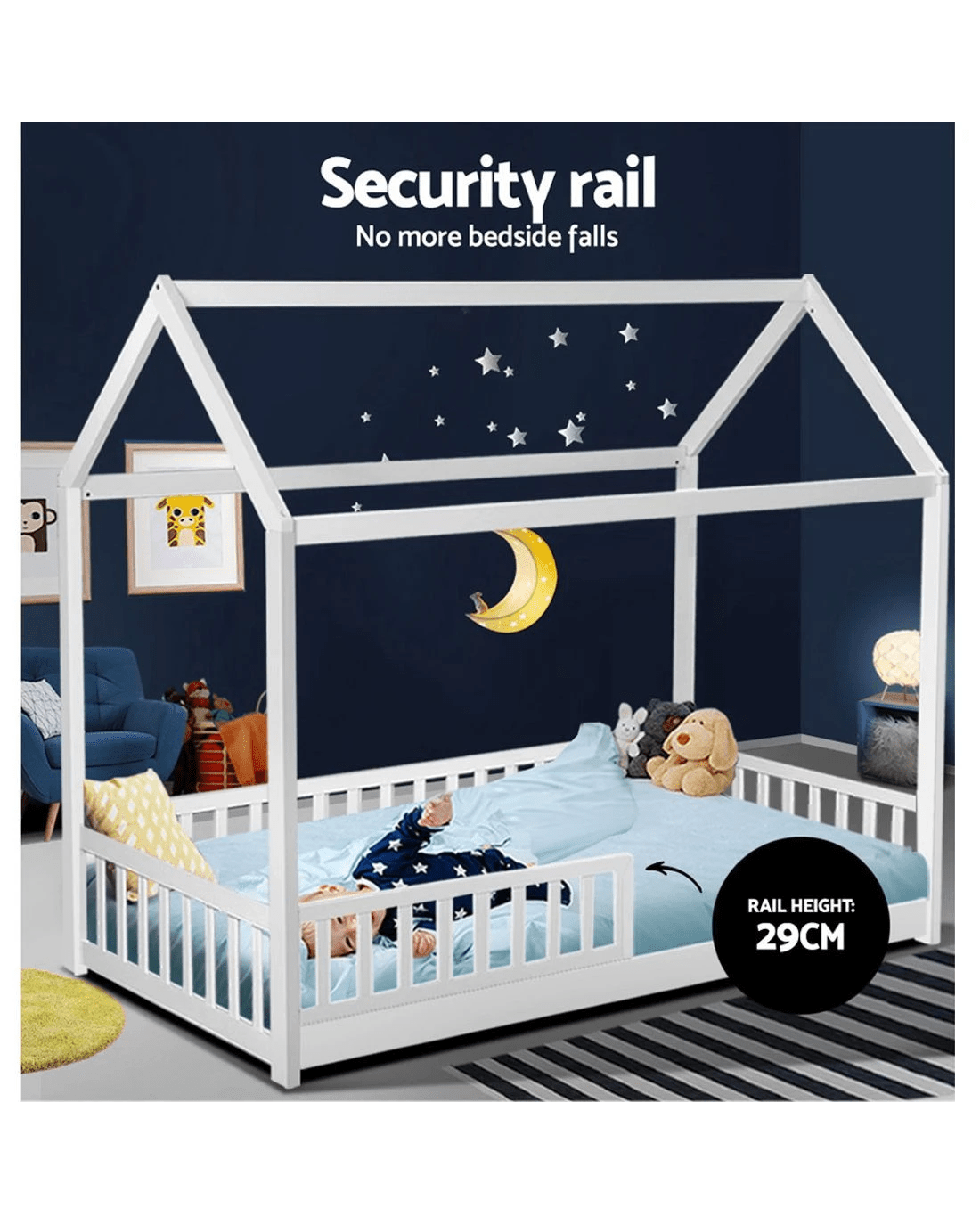 Artiss Bed Frame Wooden Kids House Frame ROCK - White