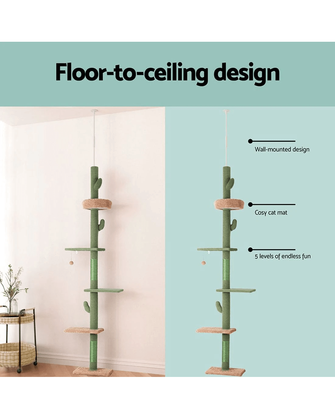 Sold by Aisle Sixi.Pet Cat Tree Tower Scratching Post Scratcher Floor to Ceiling Cats Bed 290cm - Green