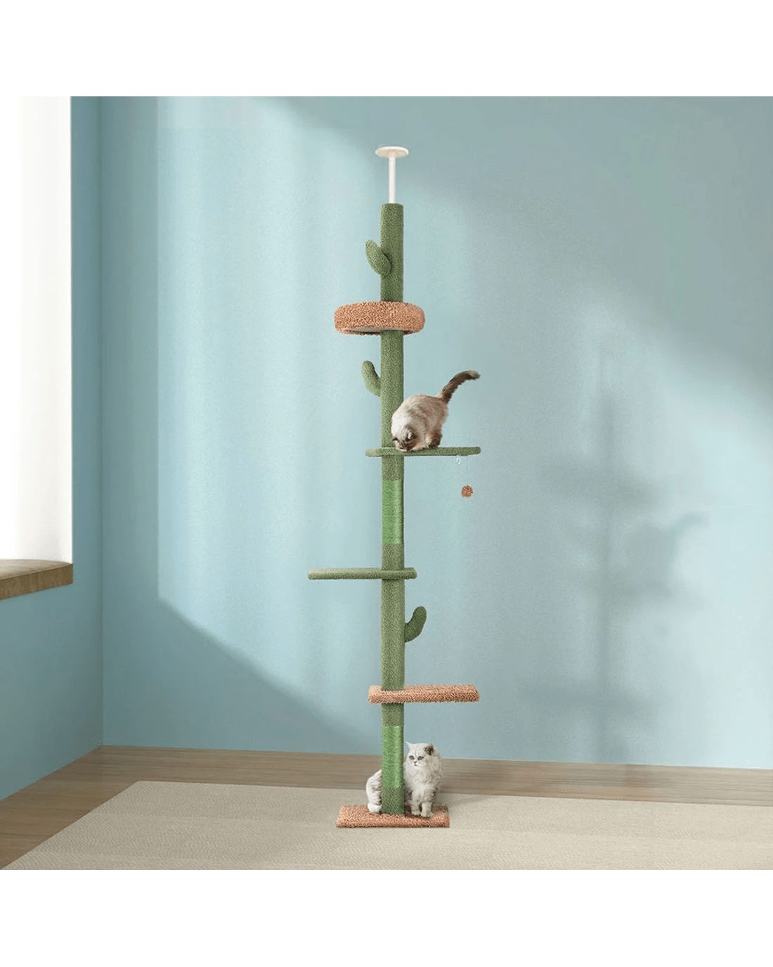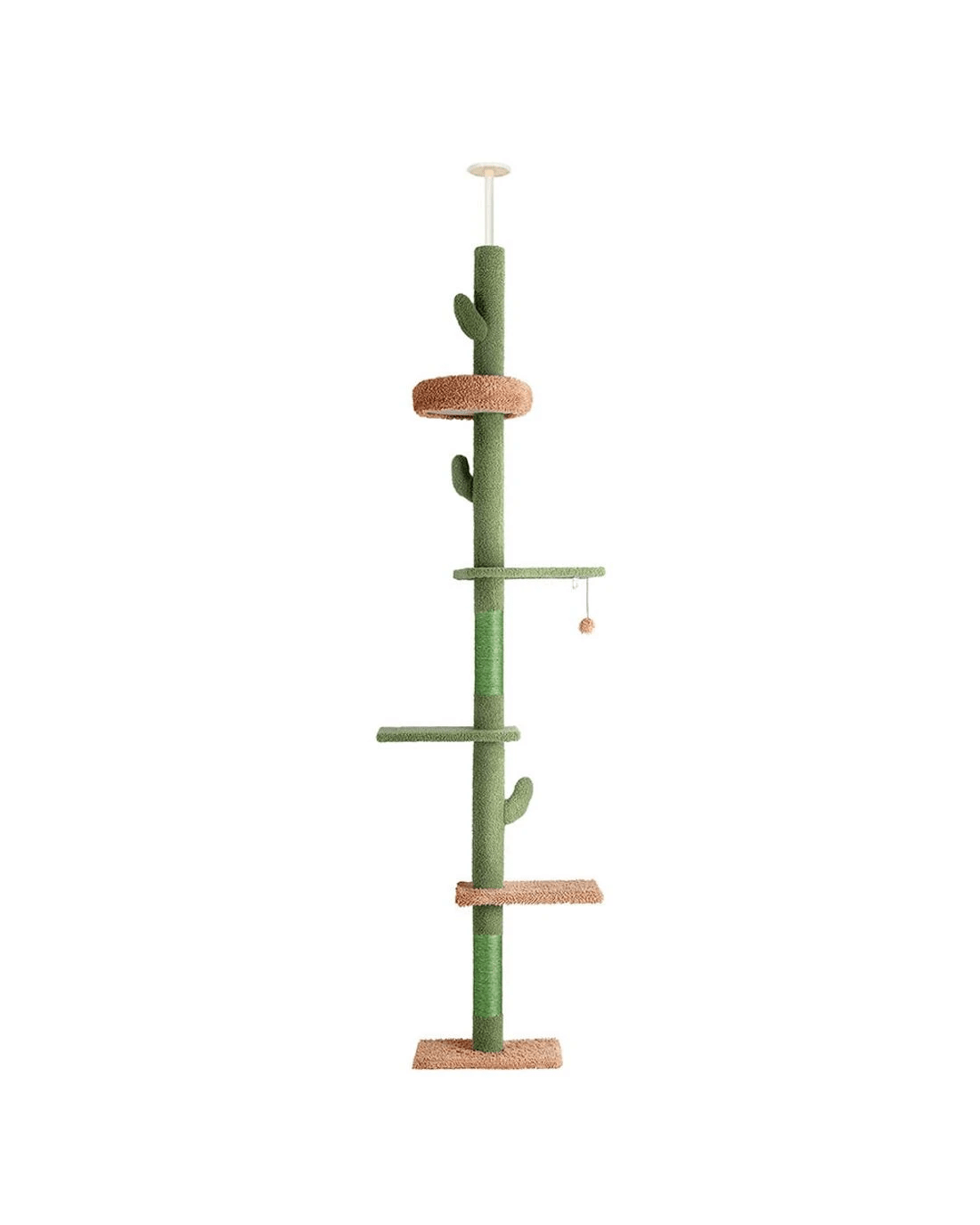 Give your cat a fun place to play and rest without sacrificing space with the floor-to-ceiling Cat Tree from i.Pet. With various playing and napping spots, your cat can have fun and frolic without taking up floor space. Made from a sturdy particleboard construction with a stable base, the cat tree will stand tall and proud. Adjust the height of the tree to accommodate different homes and cat preferences. Natural sisal posts encourage your cat's scratching instincts and keep them away from your furniture. The multi-layer design with five distinct platforms allows your cat to sit on high and observe the home. The soft, plush cover is easy on hands and paws. With a sleeping bed and a hanging you're your cat can enjoy any activity from dawn till dusk. With the i.Pet floor-to-ceiling Cat Tree, your cat will be able to express its natural instincts in safety, comfort and style.