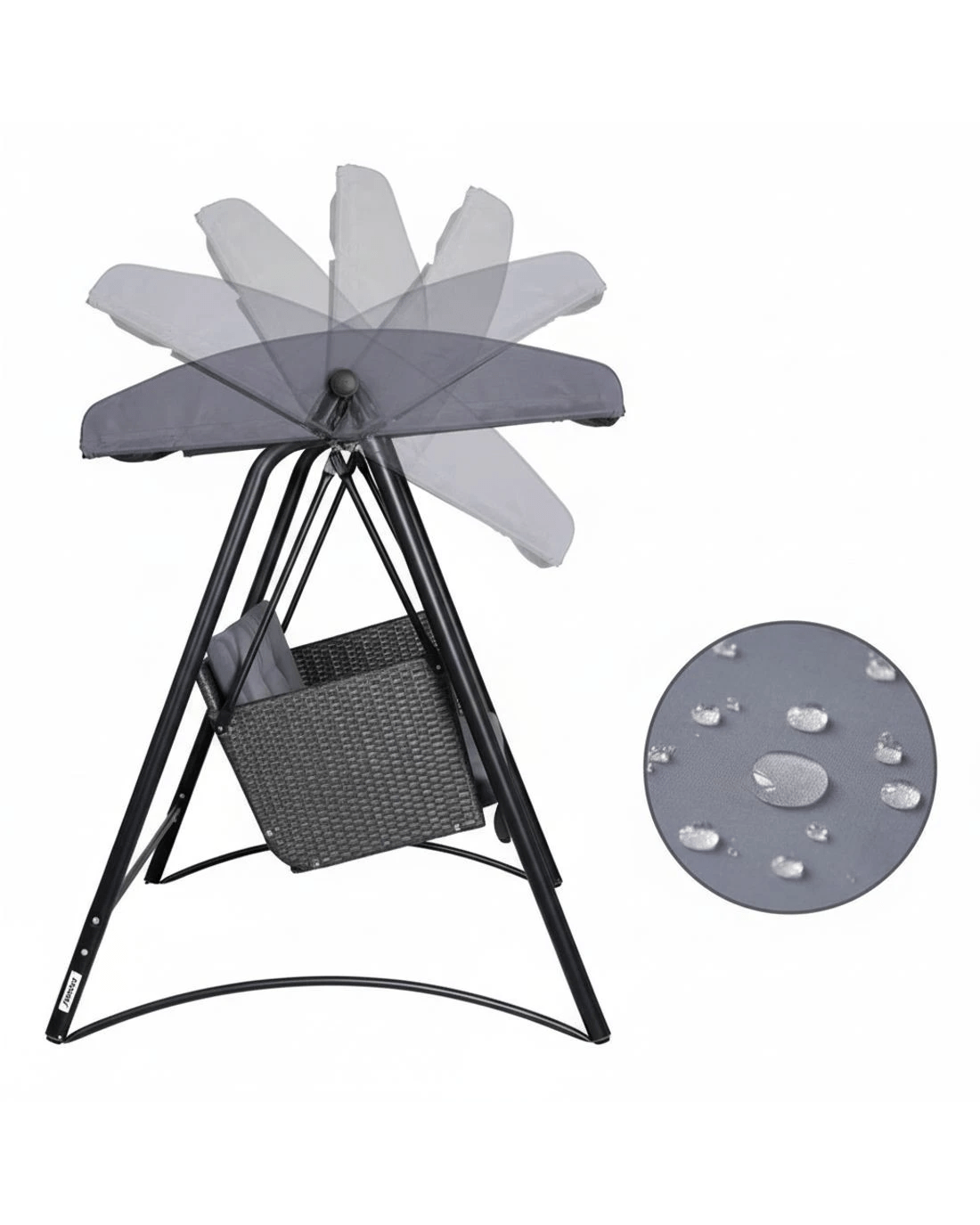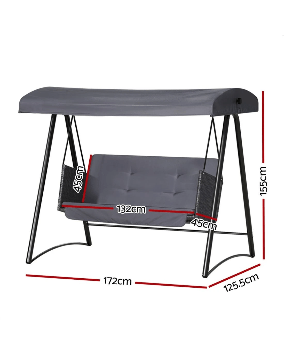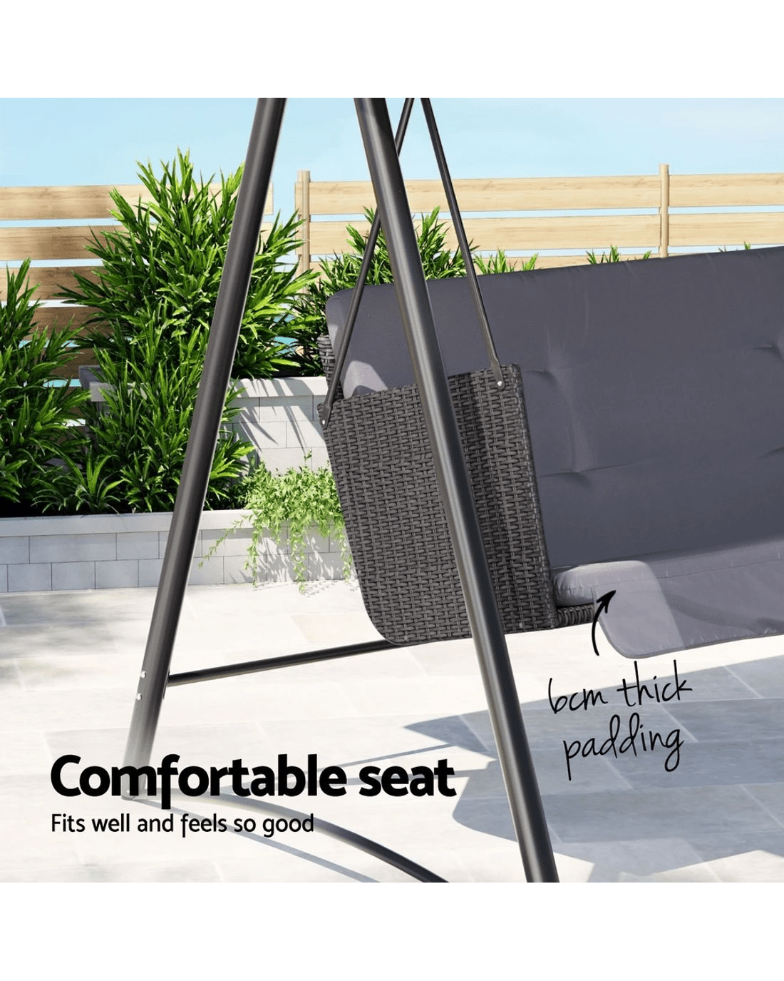 Rest and relax outdoors this season with a Gardeon 3-seater Swing Chair. The classic and practical design suits all kinds of backyards, so you can swing through any season. The chair features a strong powder-coated steel frame and upgraded support springs, giving the chair a total weight capacity of 300kg. The hand-woven Rattan seat can fit up to three adults on comfortable high-resistance sponge cushions. The fabric canopy is water-resistant and UV protected, keeping you comfortable in rain or shine. Adjust the canopy for the perfect angle to maximise shade, minimise glare from the sun, and prevent dust and debris build-up. The canopy and cushions can be removed to make cleaning a breeze. Swing on gentle breezes and enjoy fun and relaxation on the delightful Gardeon 3-seater Swing Chair.