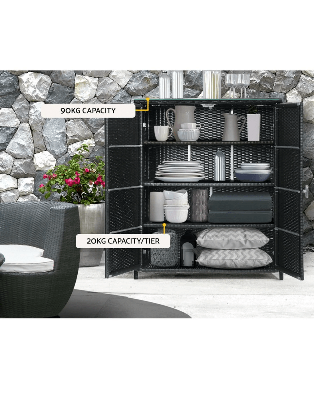 Sold by Aisle SixGardeon Outdoor Storage Cabinet Box Garage Wicker Shelf Chest Garden Shed Tools - Black