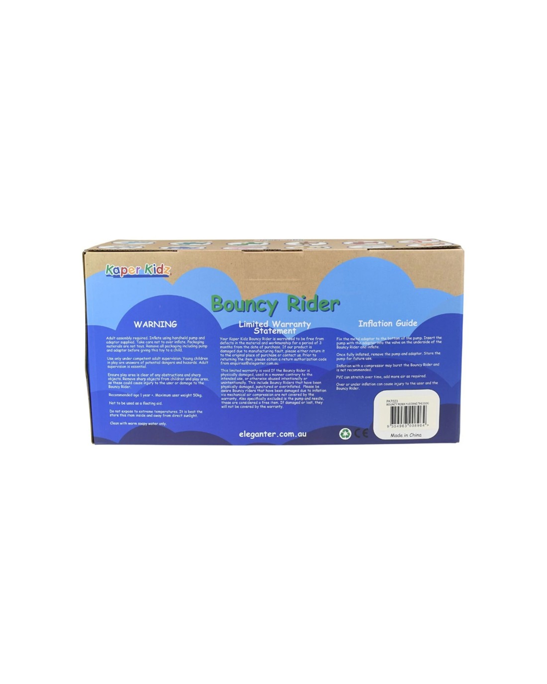 Introducing Bouncy Rider Pudding the Dog by Kaper Kidz is a lovable inflatable ride-on toy designed for young children. Its adorable dog design and friendly appearance make it a delightful companion for active play and imaginative adventures. Crafted for durability and safety, this ride-on features a comfortable seat and secure grip handles to ensure a fun and safe riding experience for your child.