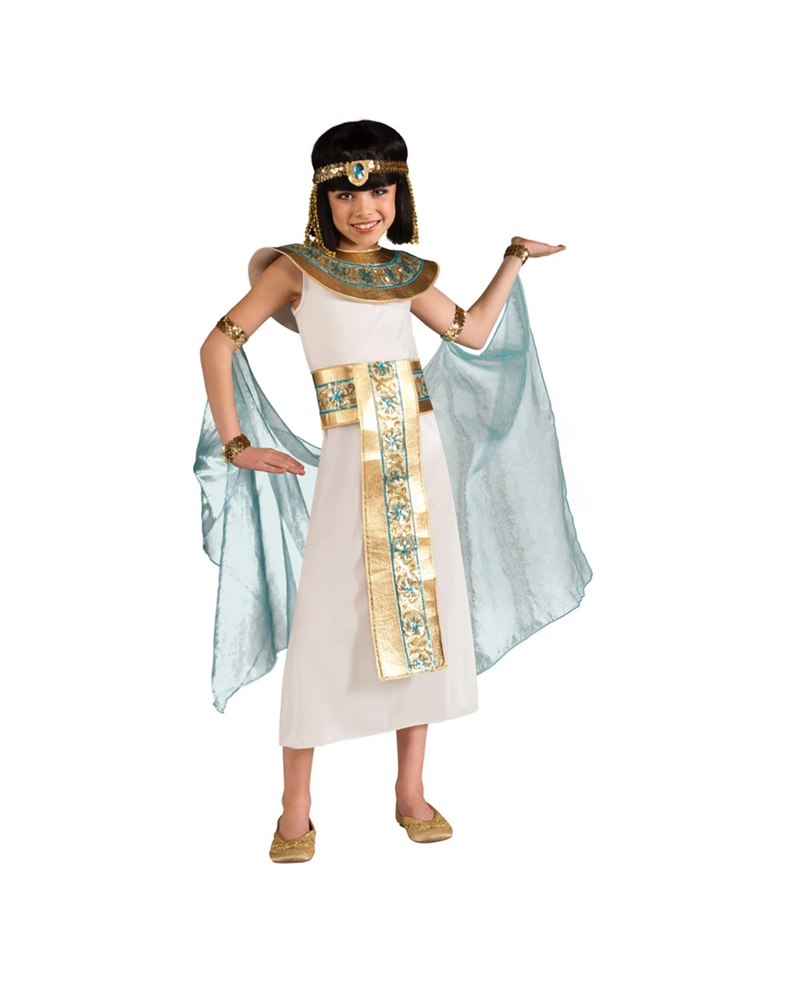 - Authentic Cleopatra Look: Includes a detailed dress, gold belt, padded collar, sequin arm bands, cuffs, and a decorative headband for a complete Egyptian queen appearance.