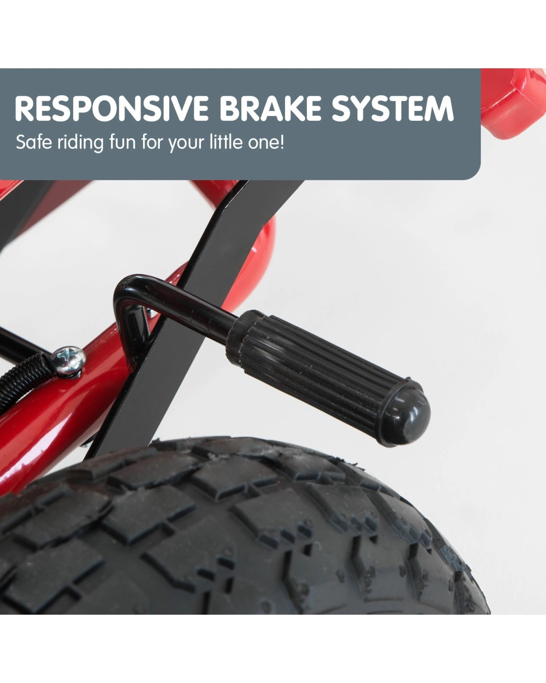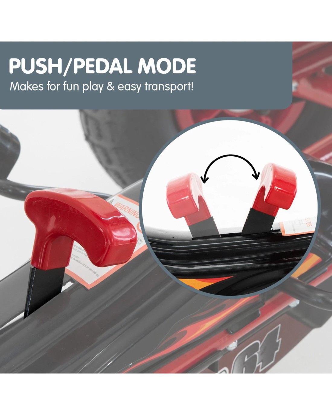 Equipped with a strongly built frame, treaded rubber tyres, a fully functional braking system and steering wheel, your child will ride fast while being safe for your peace of mind. It can be switched between pedal and manual mode.