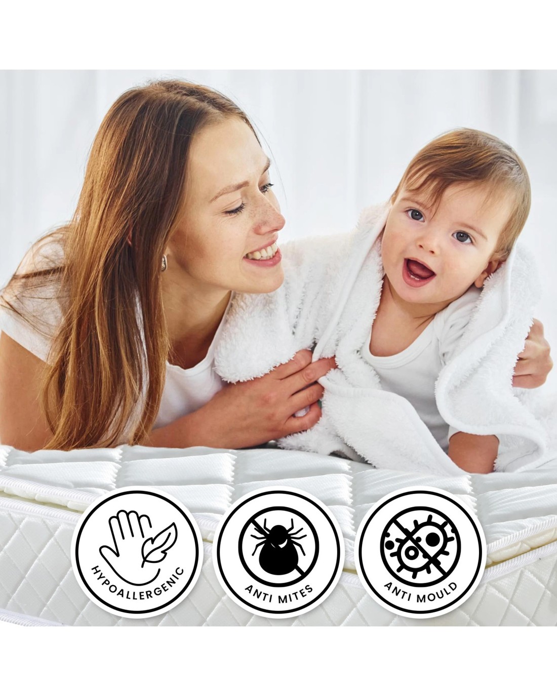 Pocket Springs follow the natural contours of your body for sublime comfort, reduces deformation and responds precisely to your every movement. Specifically zoned in 5 places to provide maximum support. It offers edge to edge support resulting in a larger sleep surface and ensuring this top quality mattress has a long life span.