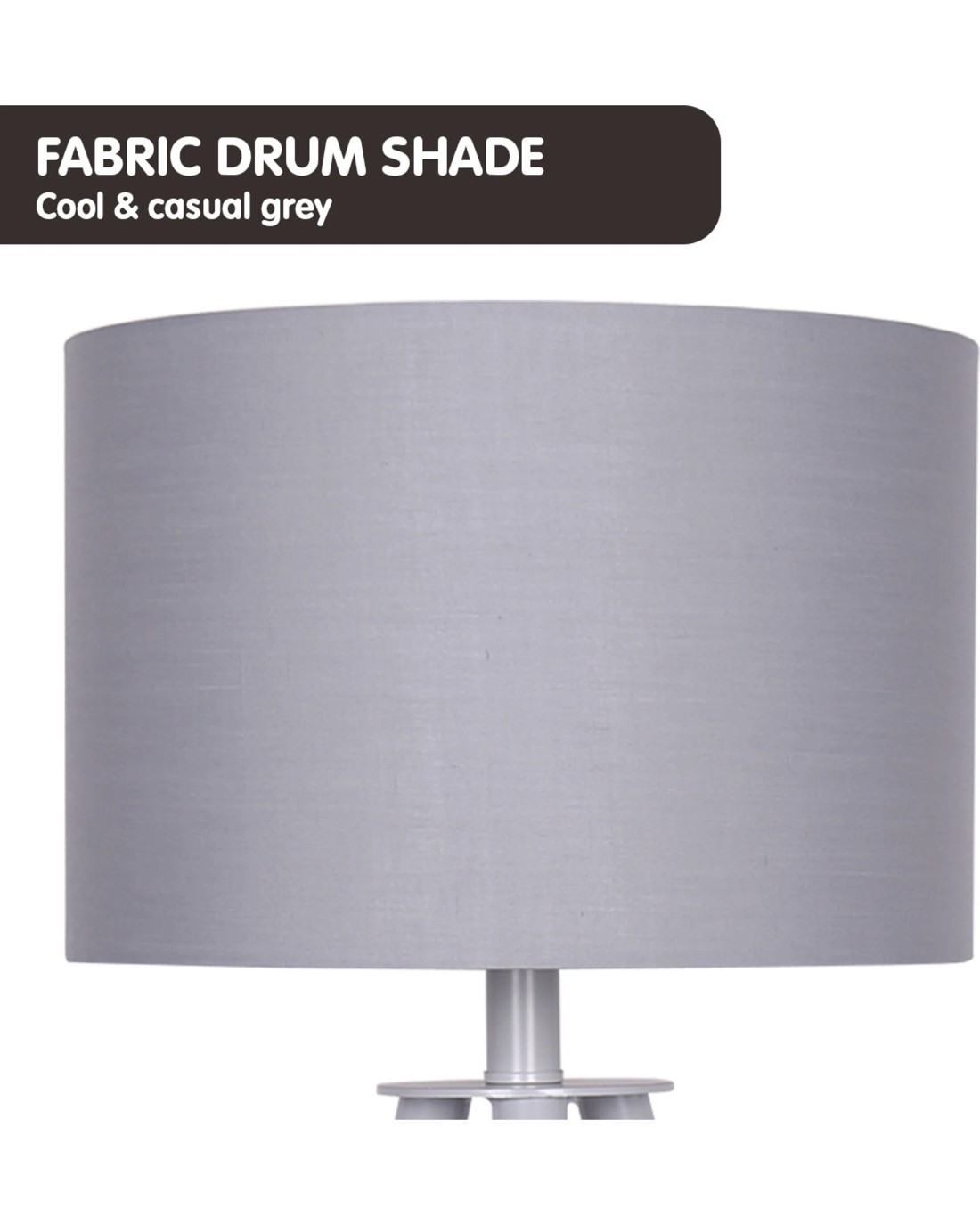 With a classic tripod stance, this accent table lamp offers plenty of style and versatility. The grey painted metal legs and fabric drum shade easily suit contemporary and modern spaces, while the eco-friendly rubberwood leg tips soften the look for urban, casual or updated lodge looks.