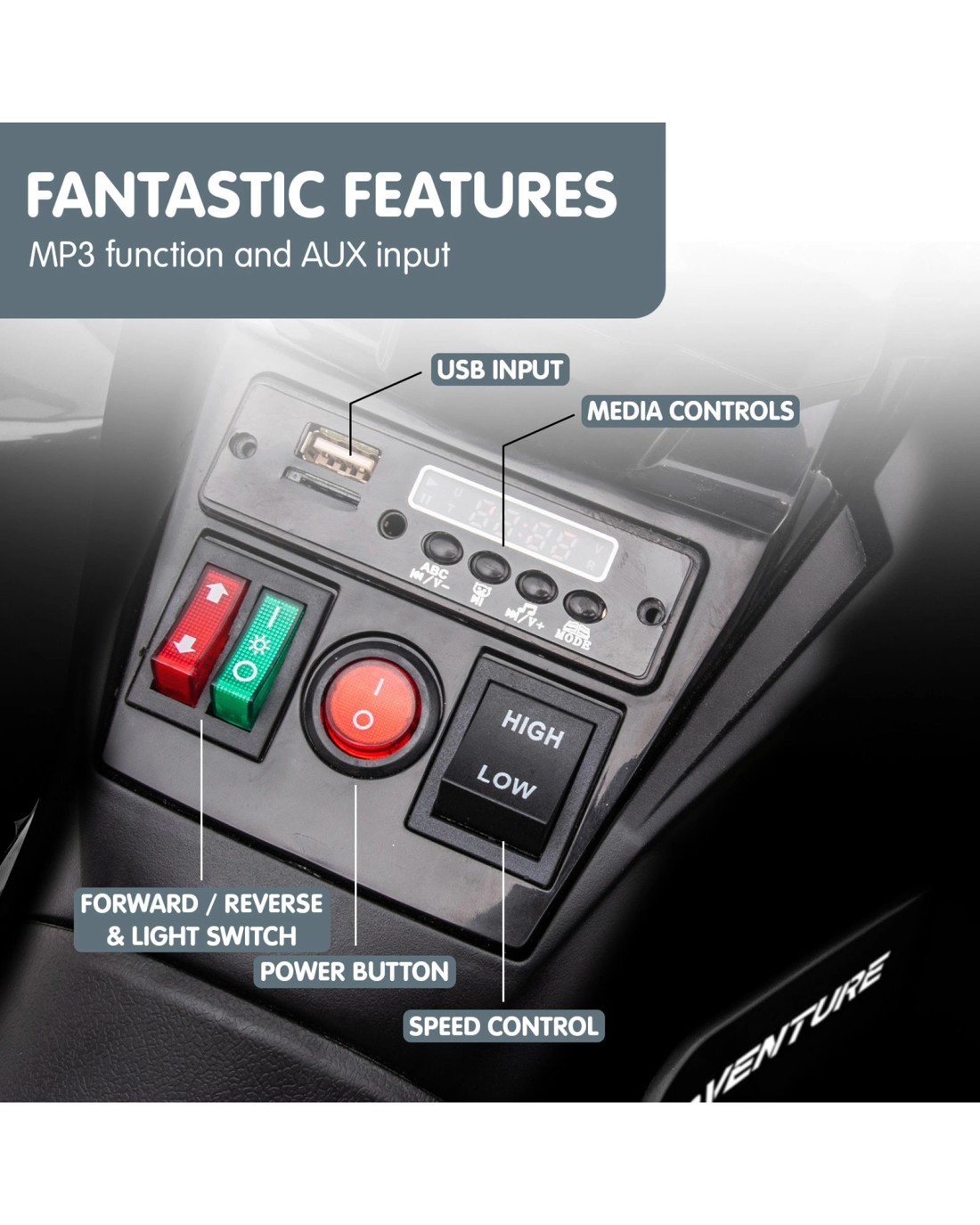 It features a high-low switch so your little one can change the vehicle's speed. This electric car also has an MP3 function and AUX input so your kid can listen to his favourite tunes as they ride along!