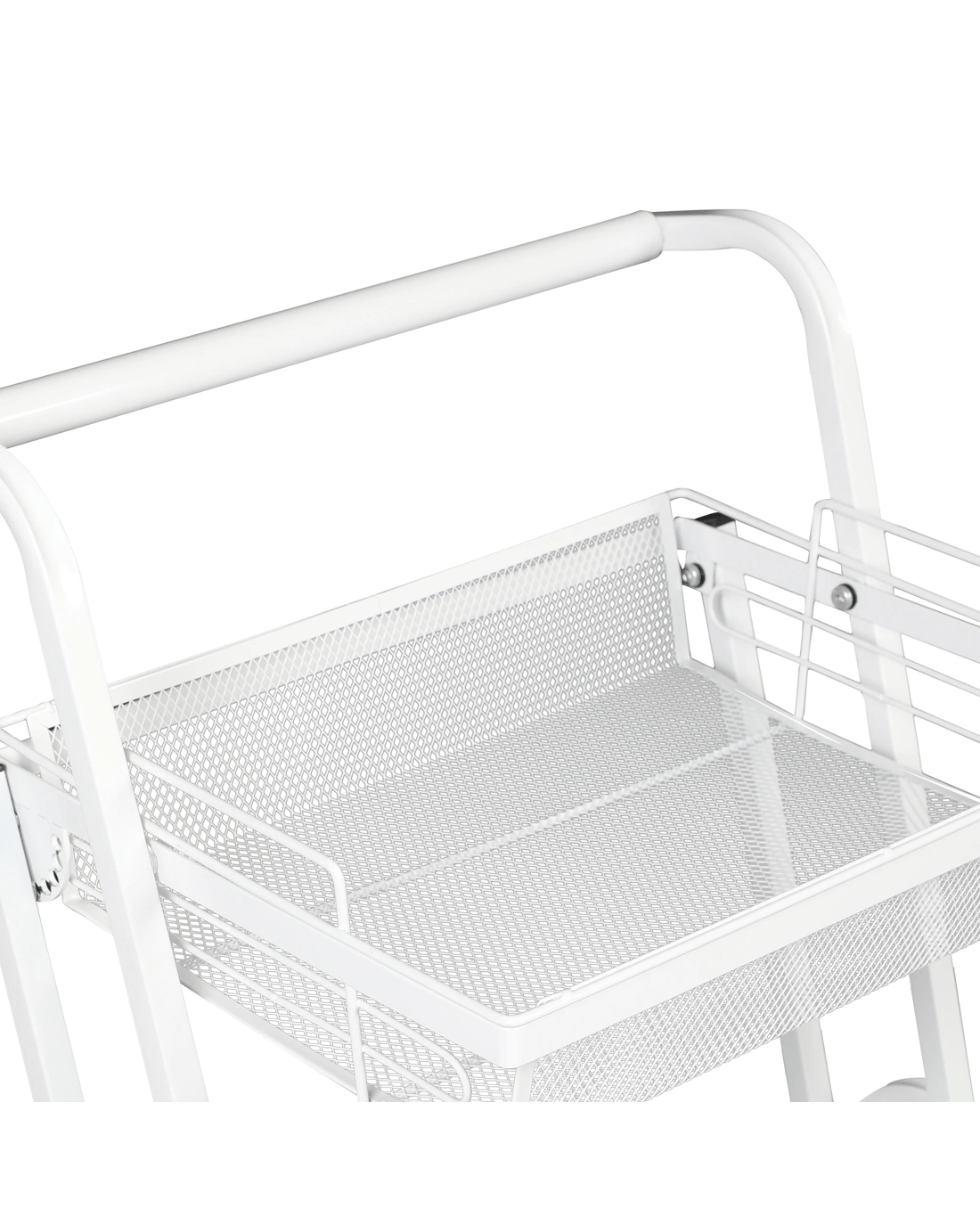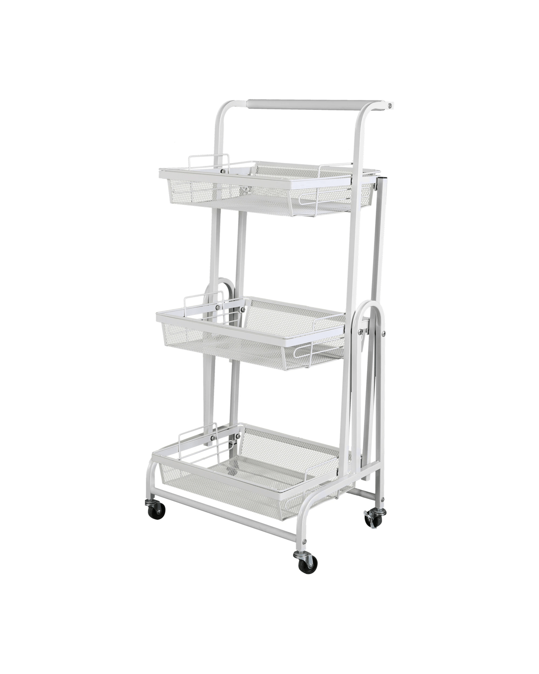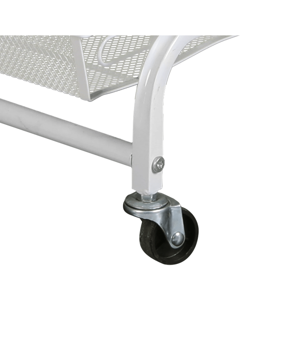 Roll your study and durable kitchen cart on wheels around. Your carts powder-coated carbon steel lasts and lasts. Round handle makes it comfortable to push. Free spinning castor wheels with brakes to stay put. Steel mesh baskets give air flow around your items.