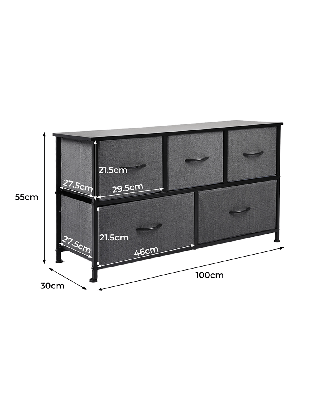 Drawer size: 29.5cm x 27.5cm x 21.5cm / 46cm x 27.5cm x 21.5cm