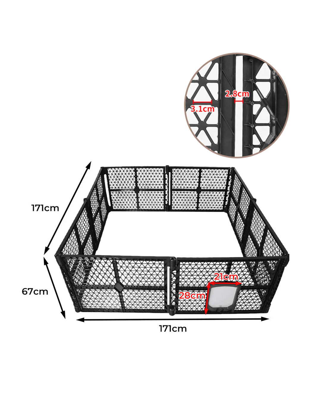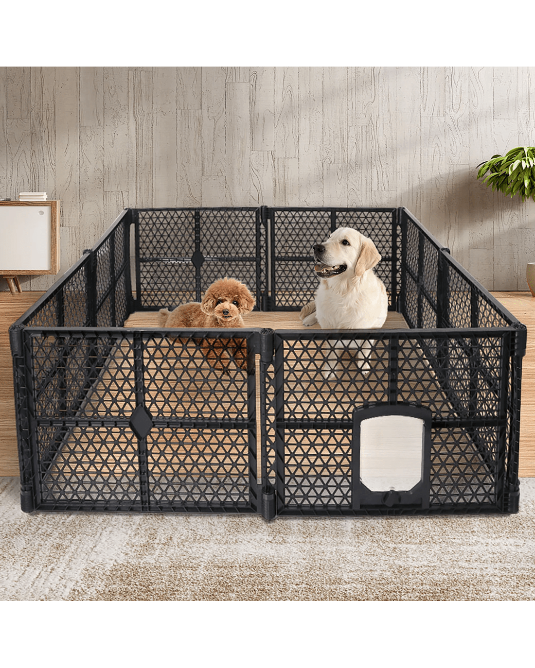 Your puppies, doggos, rabbits, guinea pigs and more will love their pet playpen. Need more space? Buy another and just connect it together. Let your pet out via the dog flap or lock the flap in place.