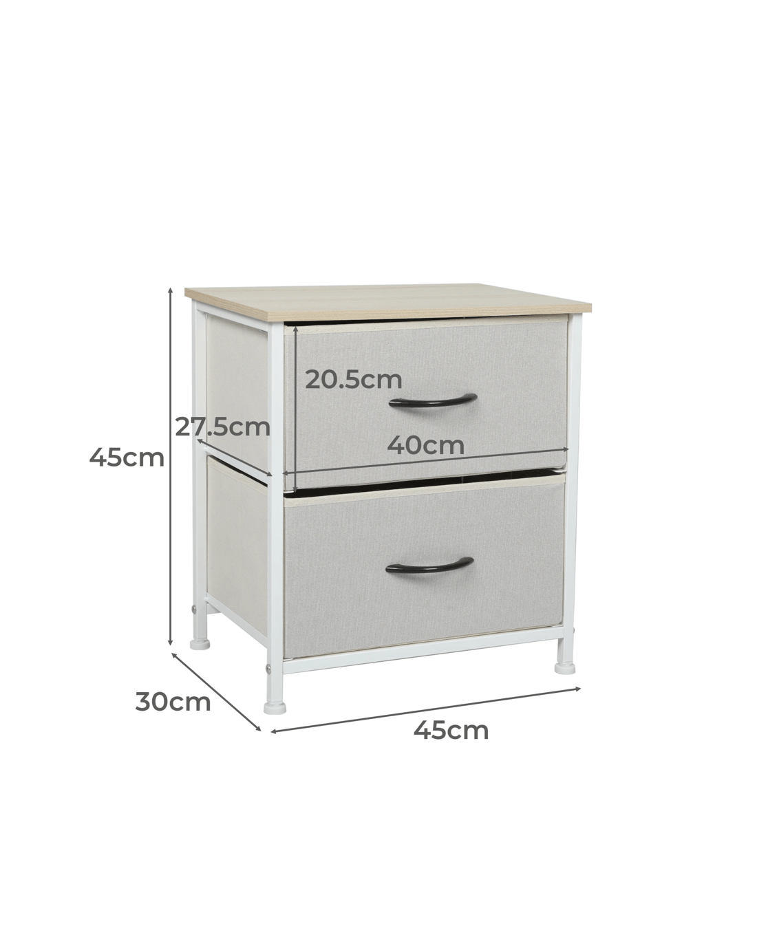 2 drawers: 45cm x 30cm x 45cm