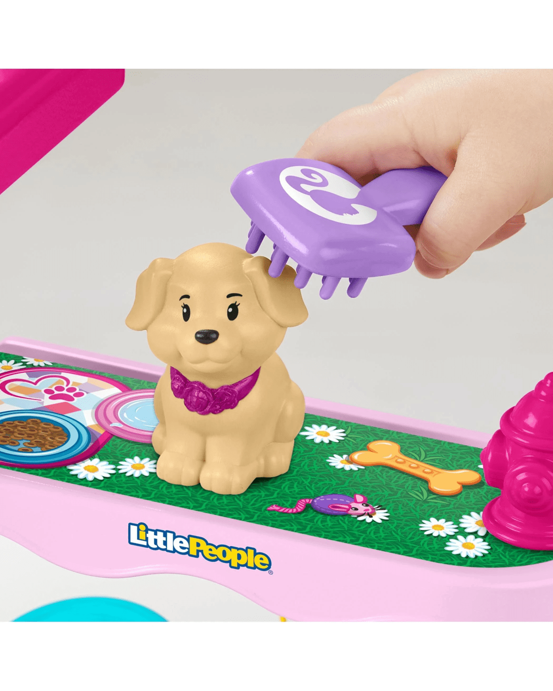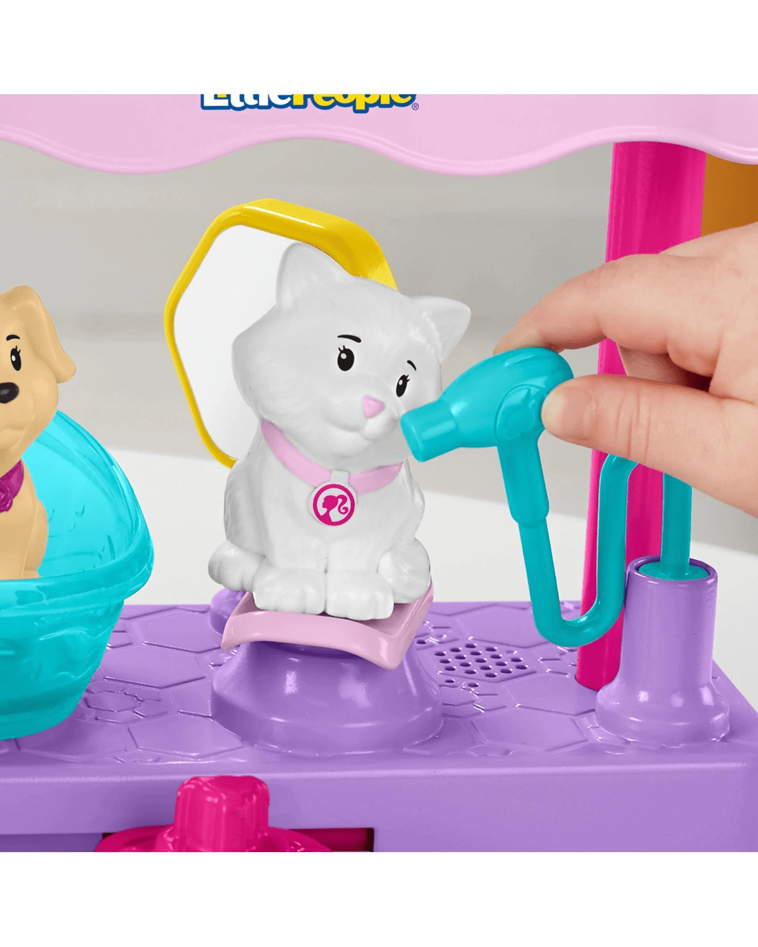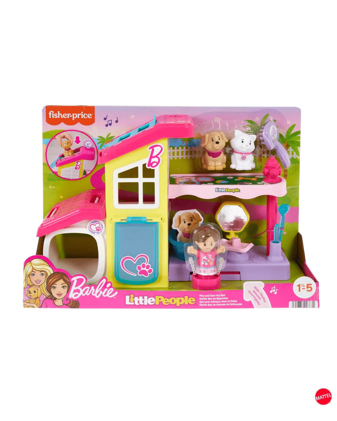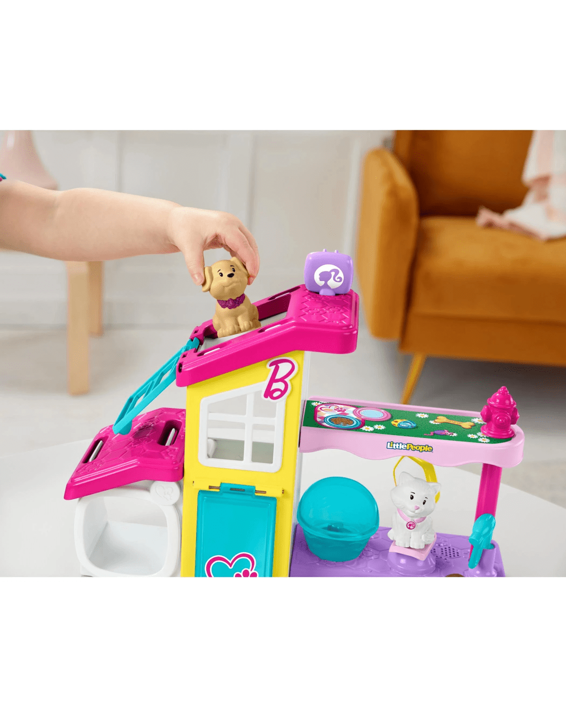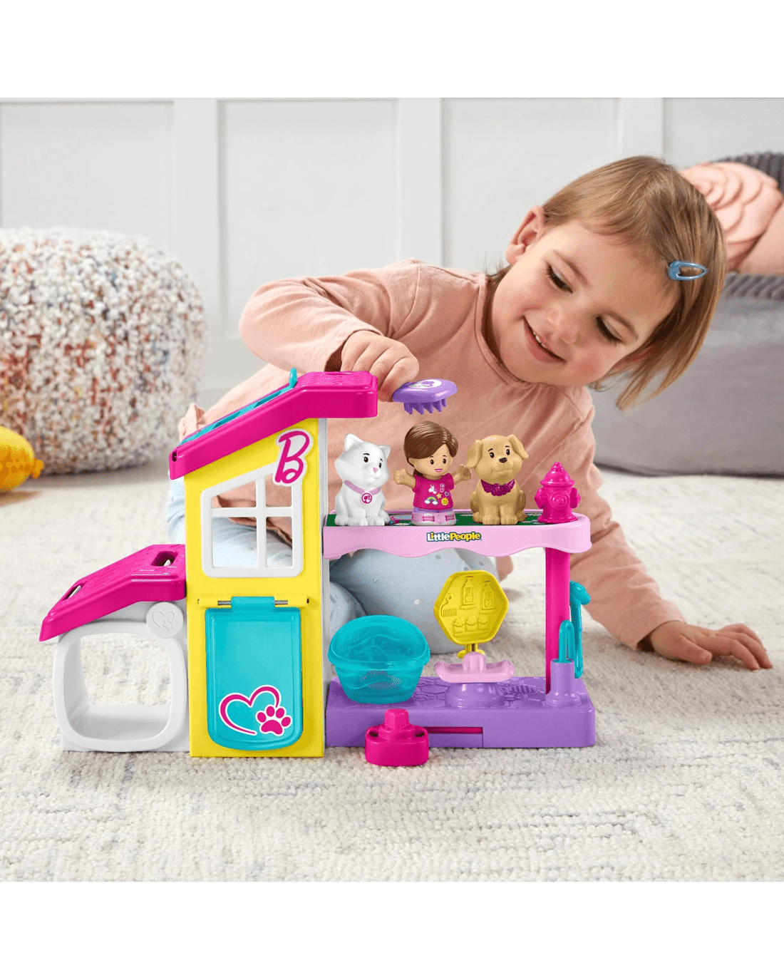 - Barbie-themed Little People pet care playset with 2 floors of play for toddler-friendly pretend play!