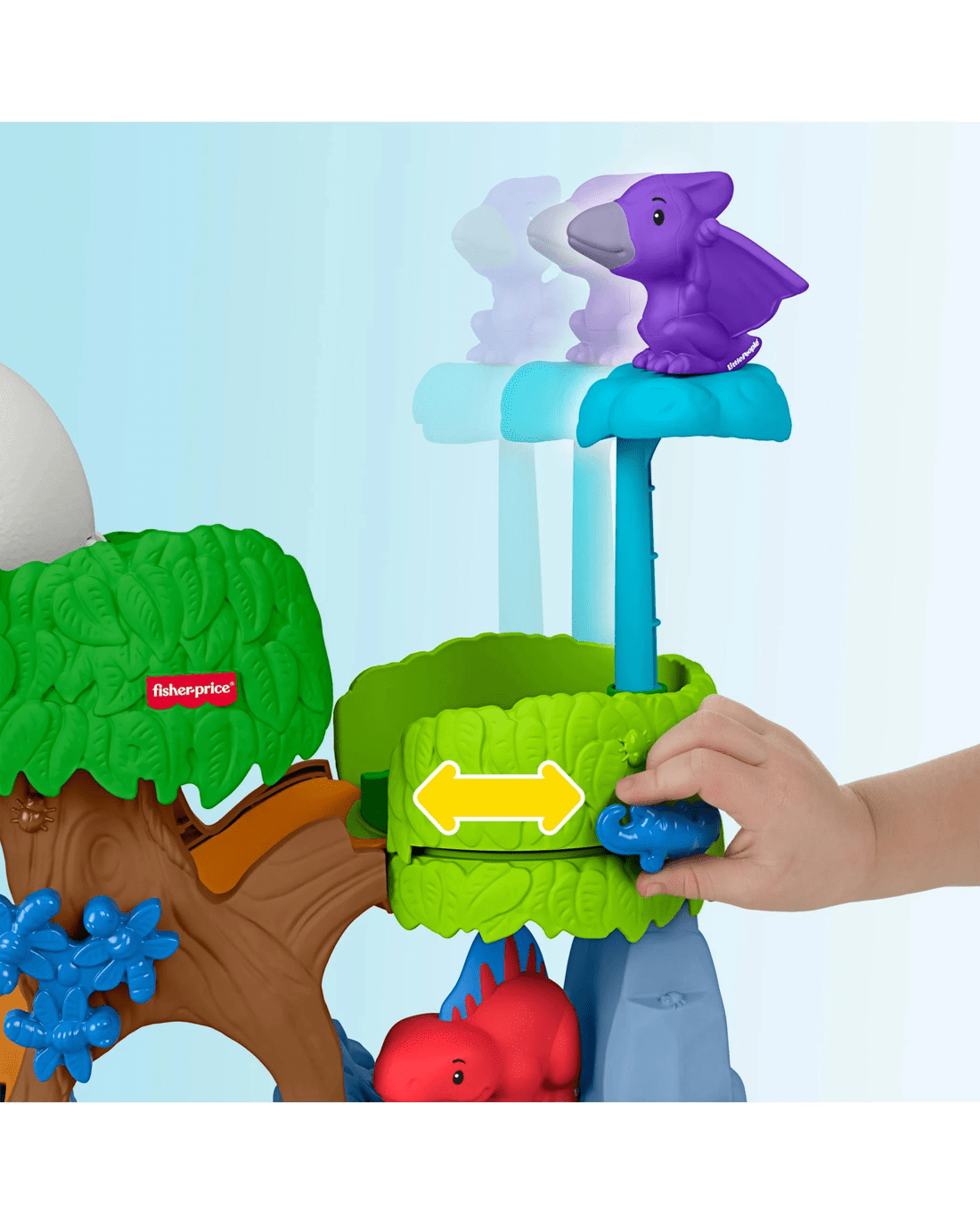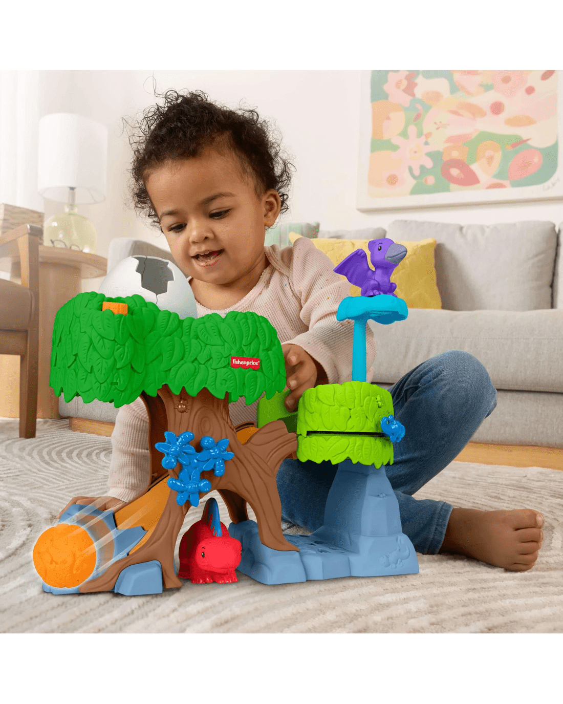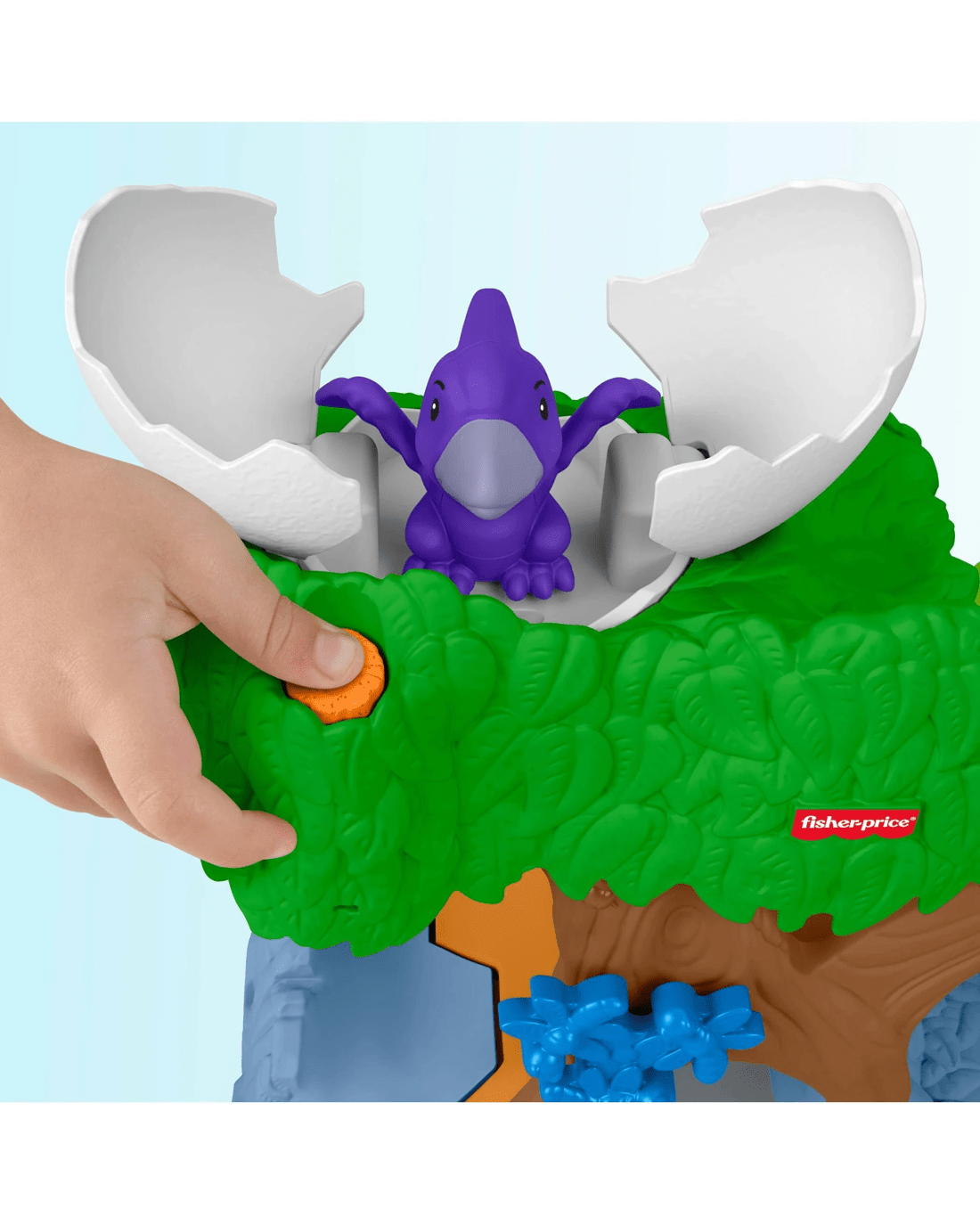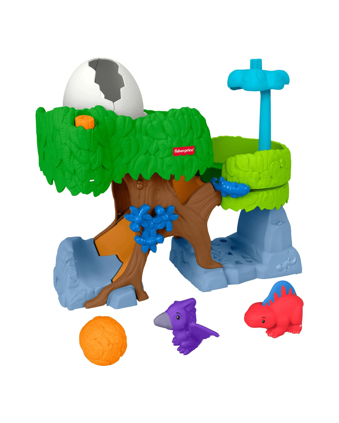 - Treehouse playset with dinosaur toys and fun hands-on activities for toddler pretend play Press the Discovery Button to hatch the egg and reveal a dino (again and again!)