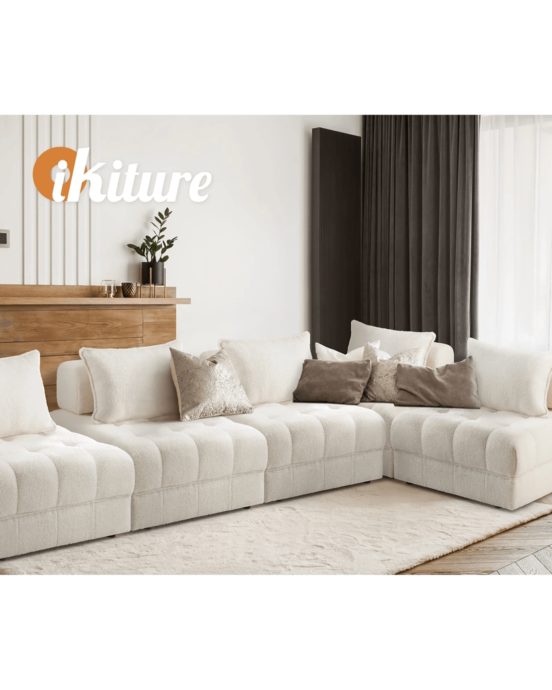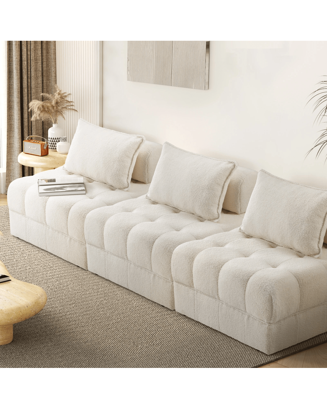 Sold by Kamprad's Oikos 1943Oikiture 3 Seater Boucle Modular Sofa Lounge Chair Armless Tofu Back - White - White