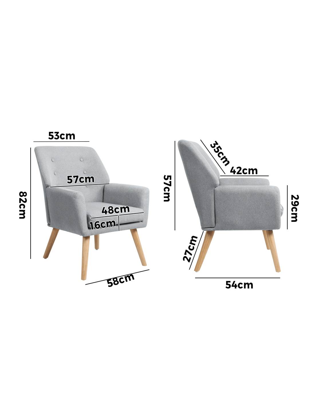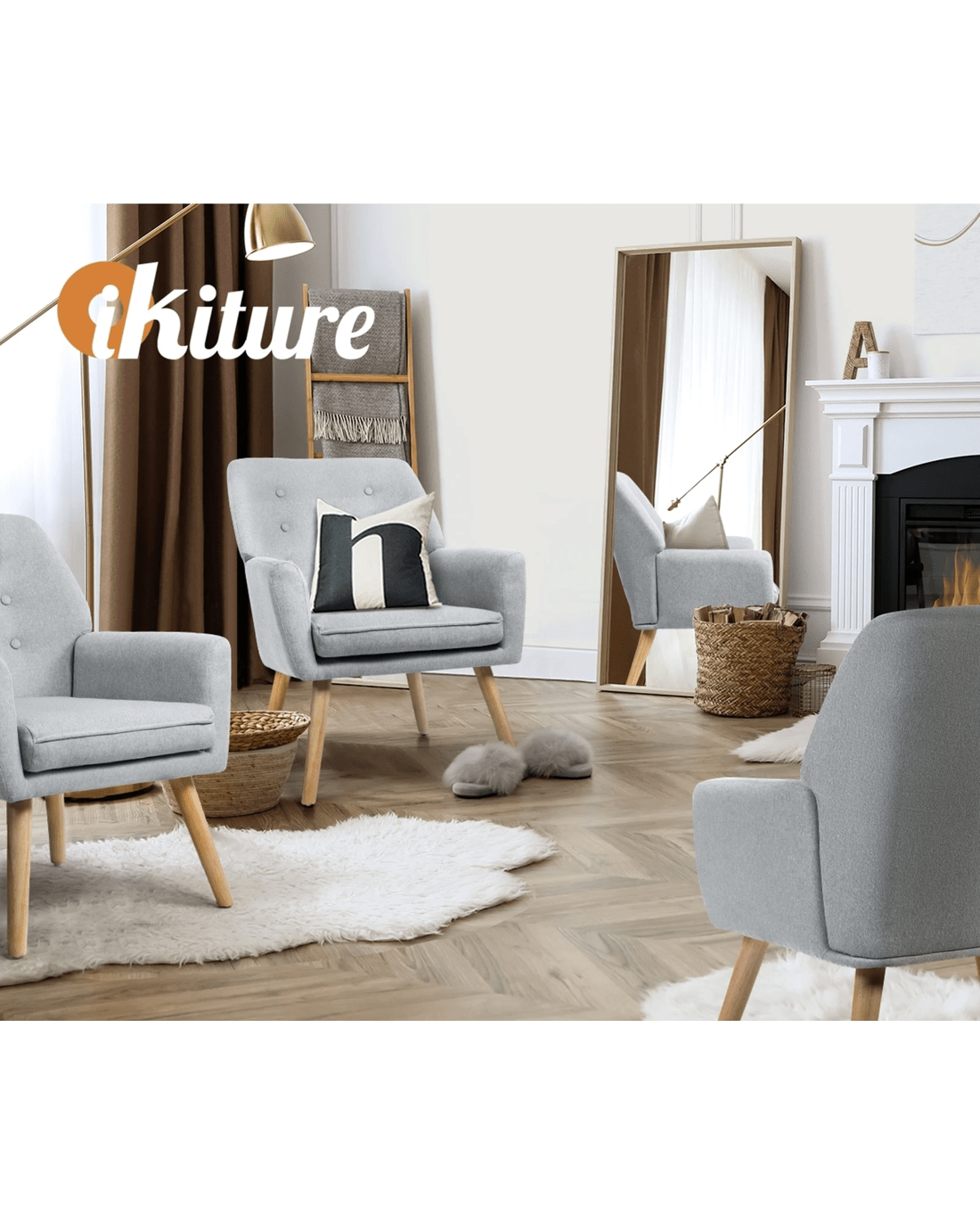 Sold by Kamprad's Oikos 1943Oikiture Armchair Lounge Chair Linen Accent Armchairs Tub Chairs Sofa - Grey