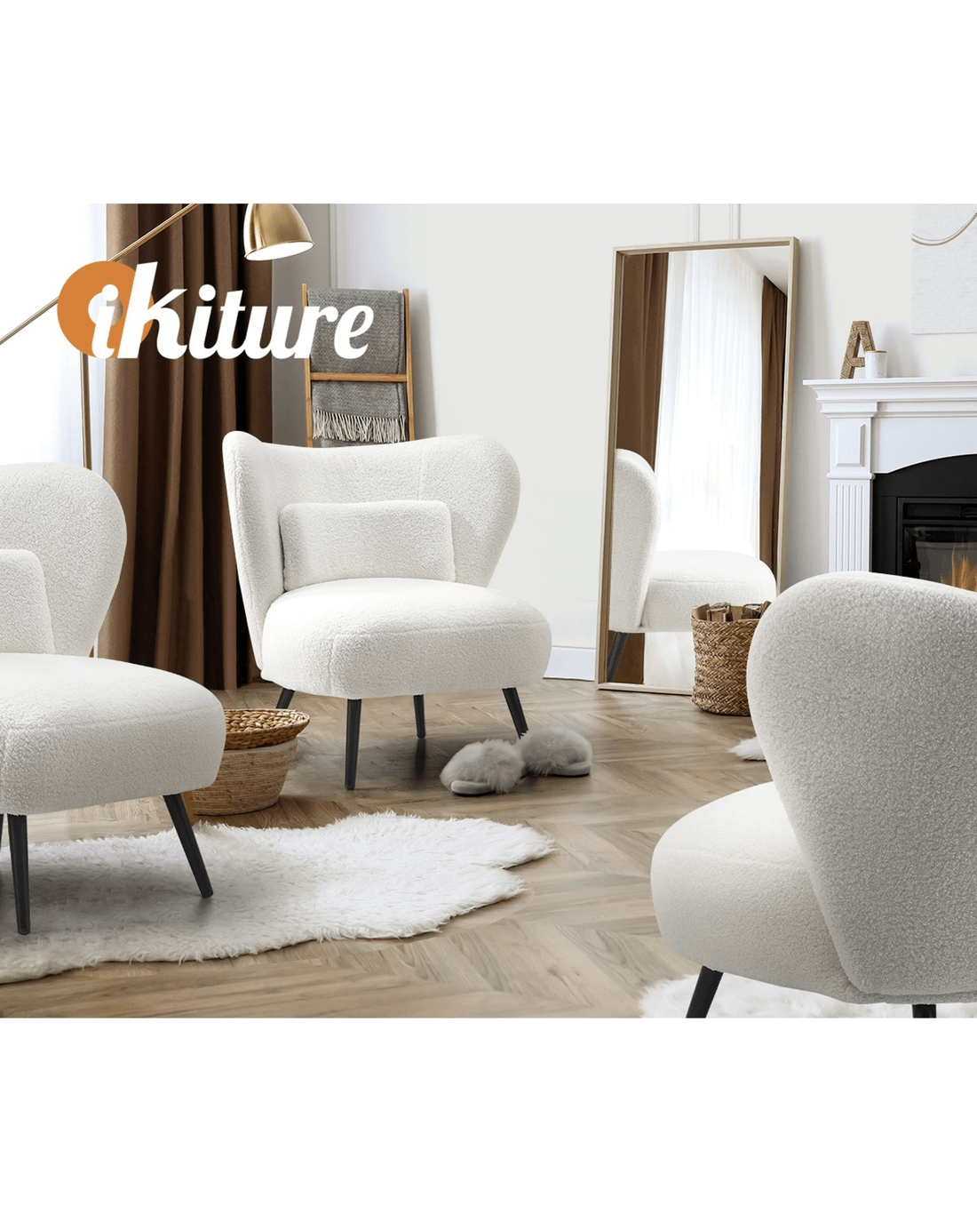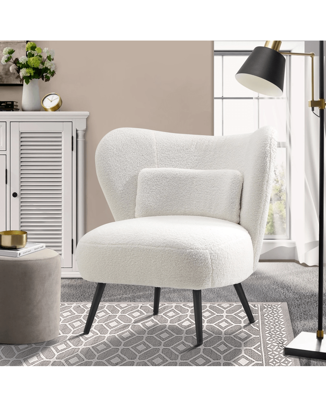 Sold by Kamprad's Oikos 1943Oikiture Armchair Lounge Chair With Lumbar Pillow Wingback Boucle - White