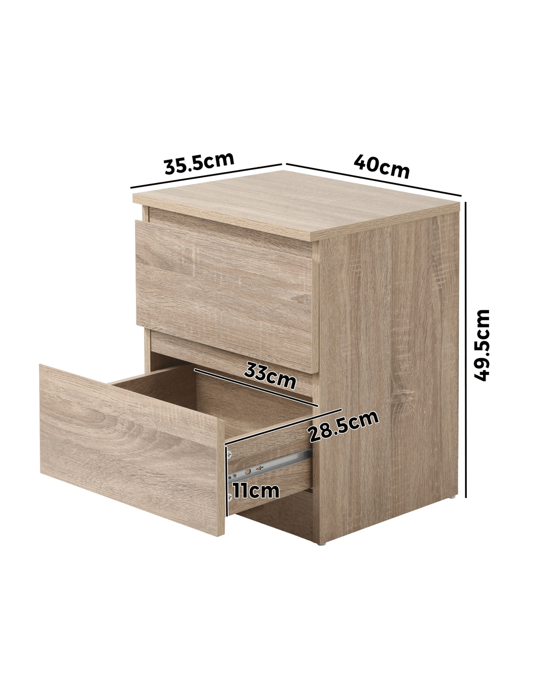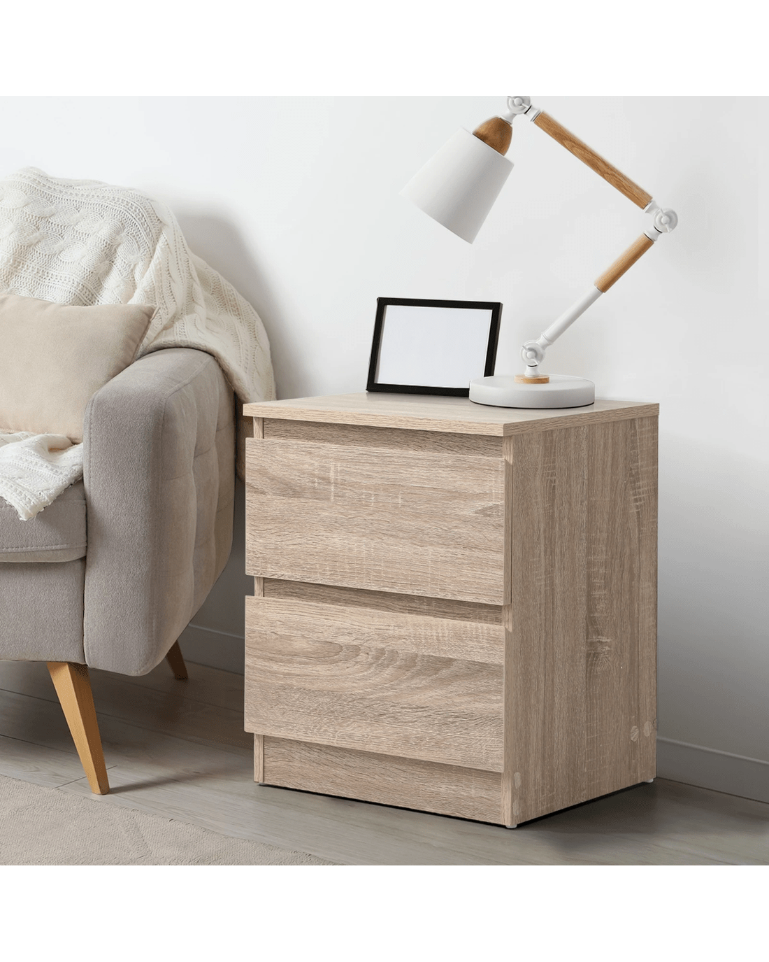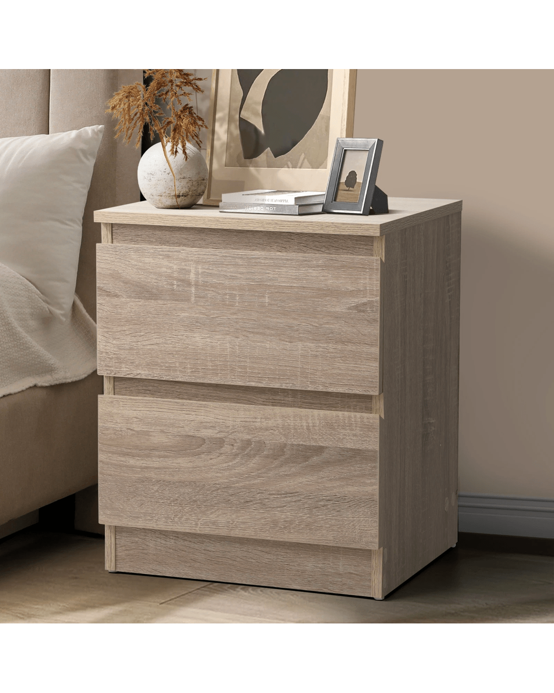 Sold by Kamprad's Oikos 1943Oikiture Bedside Table Nightstand 2 Drawers Side End Table Storage Cabinet - Natural