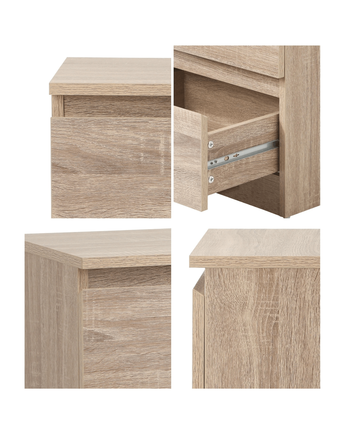 The finishing is near flawless with meticulous attention to details. Every aspect is smooth to the touch and every joint a harmonious fit. Likewise, the sturdy 15mm particle board construction with quality components ensures that the bedside table will serve its purpose with total durability and longevity.
