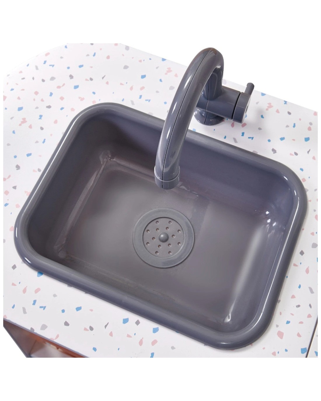 The PLUM PLAY AU Penne Pantry Wooden Corner Kitchen with Fridge is designed for young aspiring chefs to enjoy imaginative cooking play. This realistic and functional kitchen setup features interactive elements and ample storage to inspire hours of role-playing fun and development.This corner kitchen includes light-up and sound-activated hobs, a microwave oven, and a light-up extractor fan for a lifelike cooking experience. The removable sink with turning tap handles makes cleaning easy after play, while the oven with click and turn knobs allows children to learn how to set the temperature correctly. The built-in clock with moving hands offers a fun way to introduce children to telling time.The modular fridge freezer with an internal shelf and pretend ice dispenser, including plastic ice cubes and cups, encourages role play. The large L-shaped counter provides a spacious area for pretend cooking and serving, making it perfect for compact spaces while still offering plenty of room for creative play. Under-rack storage with pastel peach baskets helps keep pots and pans organised, and shelves provide space for shop or caf role play. A selection of stainless-steel utensils, pots, pans, and wall hooks are included to complete the pretend kitchen setup.Easy to assemble with supplied instructions, the kitchen is a durable and engaging toy that promotes imaginative and educational play. It may vary slightly from images but offers a sturdy, fun, and realistic cooking environment for children to develop fine motor skills, social skills, and creativity.Key Features:Realistic Interactive Features Light-up and sound-activated hobs, microwave, and extractor fan create an engaging play experience that mimics real cooking appliances.Versatile Storage and Play Accessories Comes with a modular fridge with internal shelf, pretend ice dispenser, plastic cups, and ice cubes to inspire creative pretend play.Complete Kitchen Play Set Includes stainless-steel utensils, pots, pans, and injection-moulded baskets for a comprehensive pretend kitchen experience.Compact Yet Spacious Design The L-shaped shape maximises play area in a small space, allowing ample room for pretend cooking and serving.Educational Elements A functional clock with moving hands adds a learning component to make play both fun and educational.Specifications:Brand: PLUM PLAY AUProduct Type: Toy play kitchenDimensions: Not specifiedAssembly: Supplied flat packed and pre-drilled with easy instructionsPackaging Volume: Not specified
