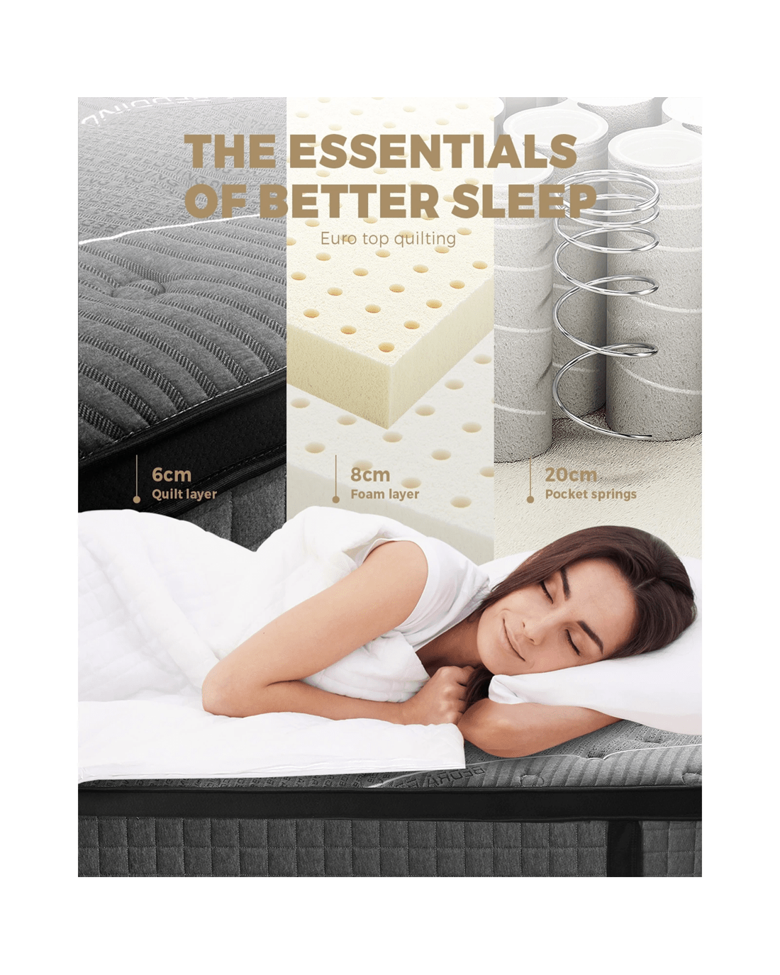 Sold by Kamprad's Oikos 1943Bedra Bedding Mattress 7 Zone Euro Top Latex Pocket Spring 34cm King - Multi