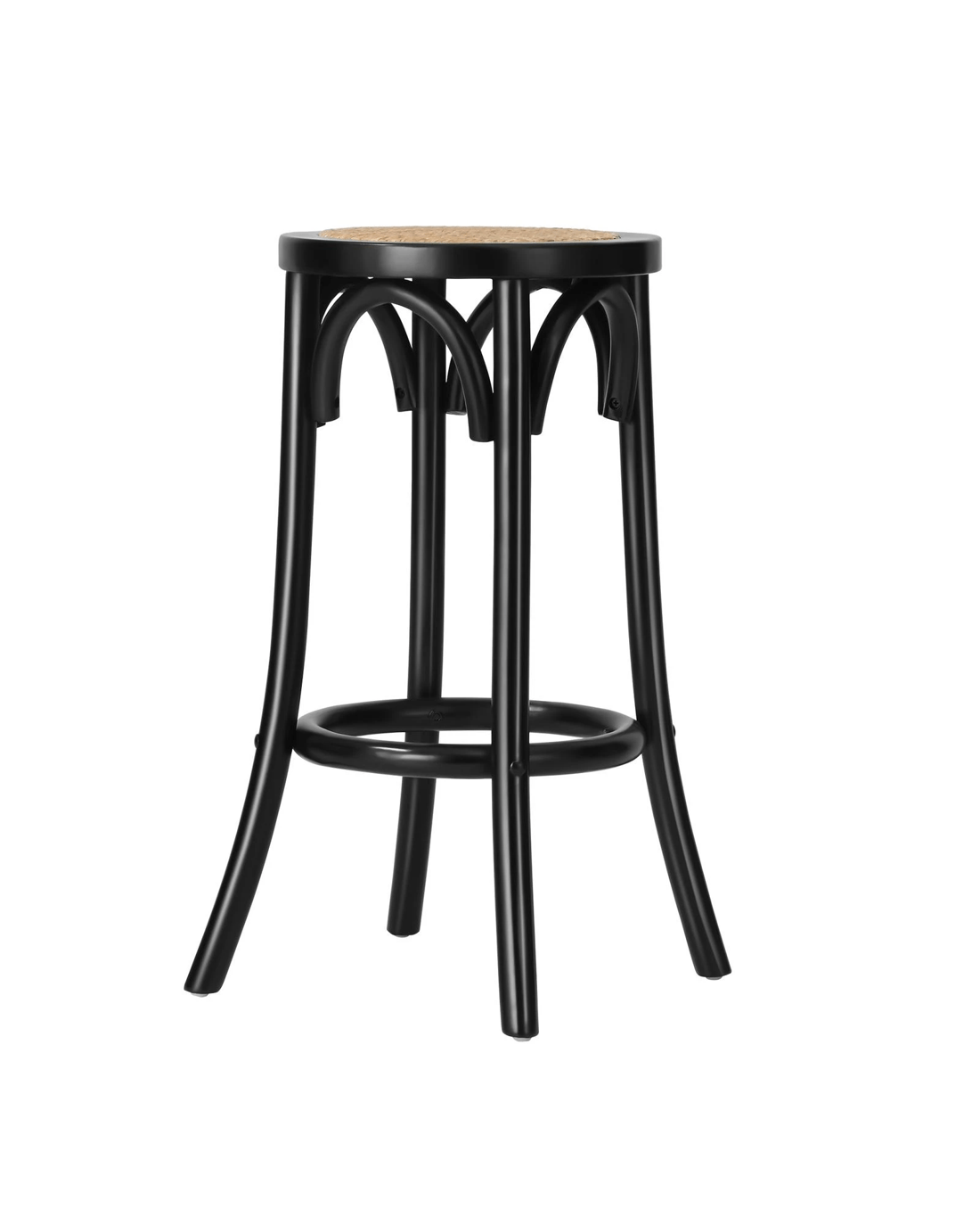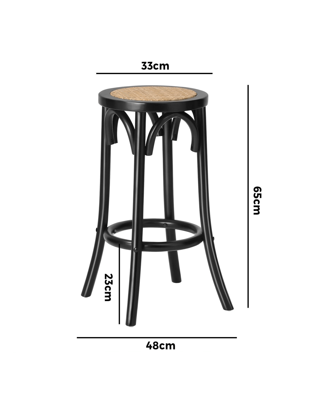 Sold by Kamprad's Oikos 1943Oikiture 2x Bar Stools Kitchen Vintage Dining Chair Rattan Seat - Black