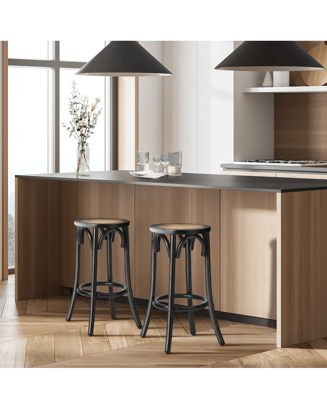 Don't miss the opportunity to bring the warmth of rattan and the sophistication of exceptional design into your life. Elevate your surroundings with this Oikiture rattan bar stool set - where artistry, comfort, and functionality intertwine harmoniously.