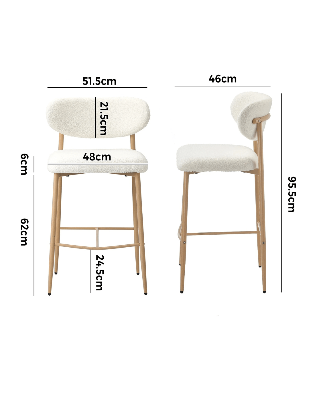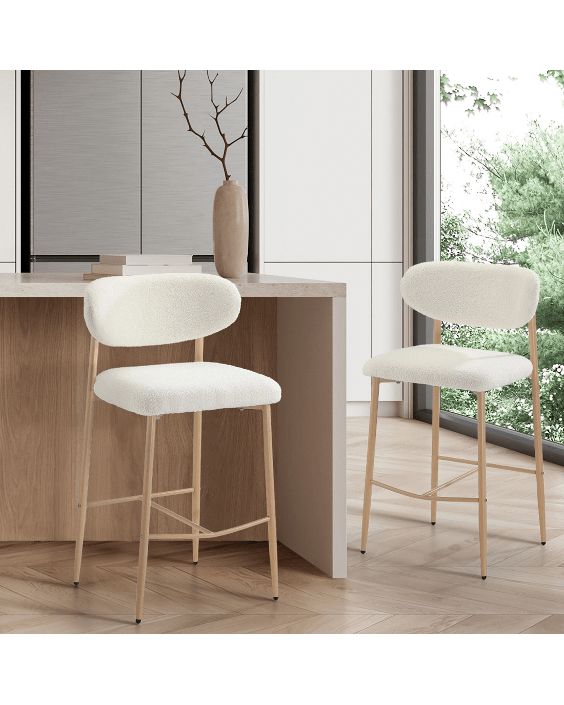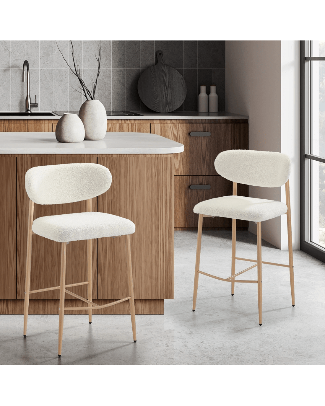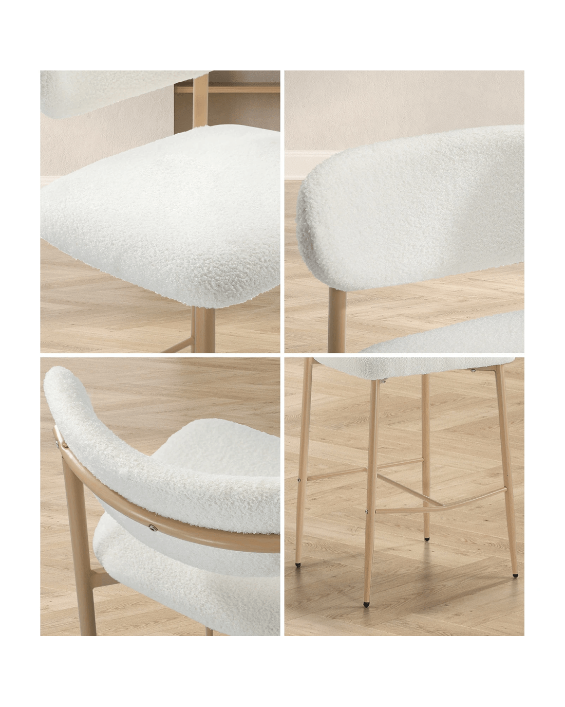 Sold by Kamprad's Oikos 1943Oikiture 2x Bar Stools Kitchen Stool Counter Chair Boucle Fabric - Natural