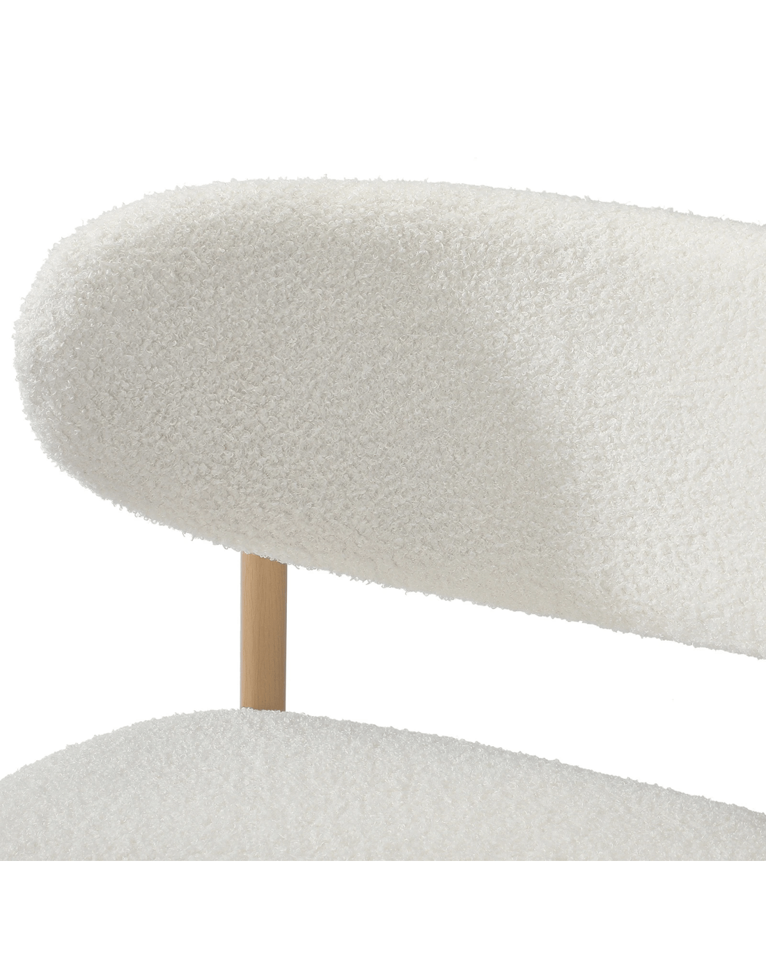 Appreciating the finer things in life, the cosy boucle fabric upholstered seat is meticulously finished with near-flawless workmanship and padded with rich comfort. The finesse is in all the details. You'll also appreciate the wide seat and supportive, contoured backrest (similarly wrapped in boucle fabric) while you sit back and chill out with your favourite beverage.