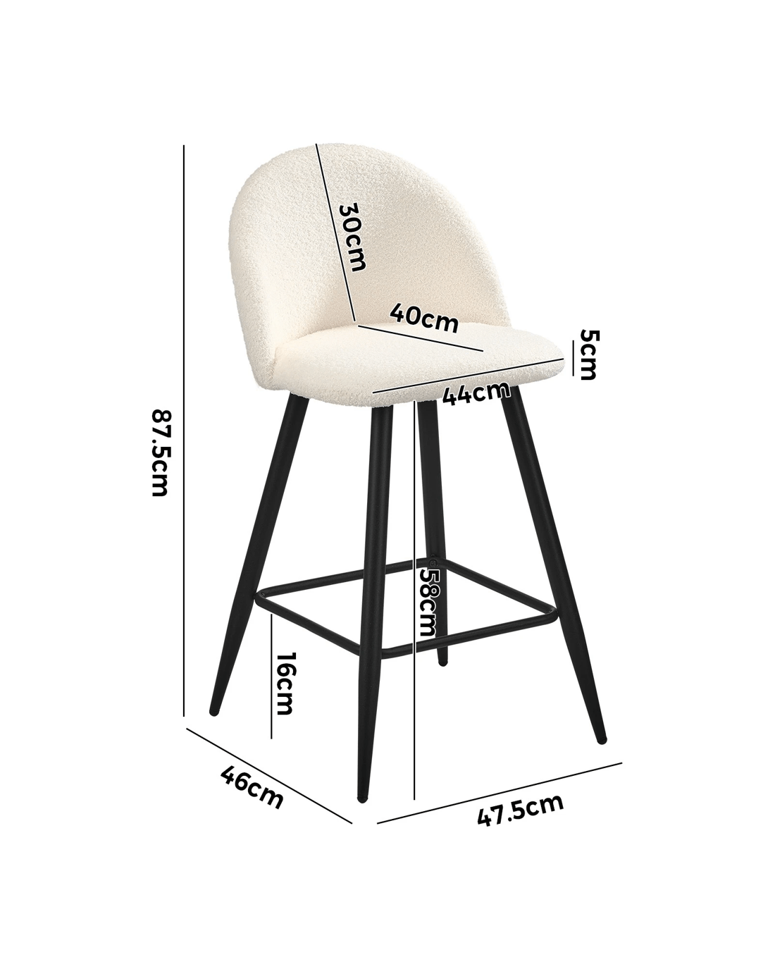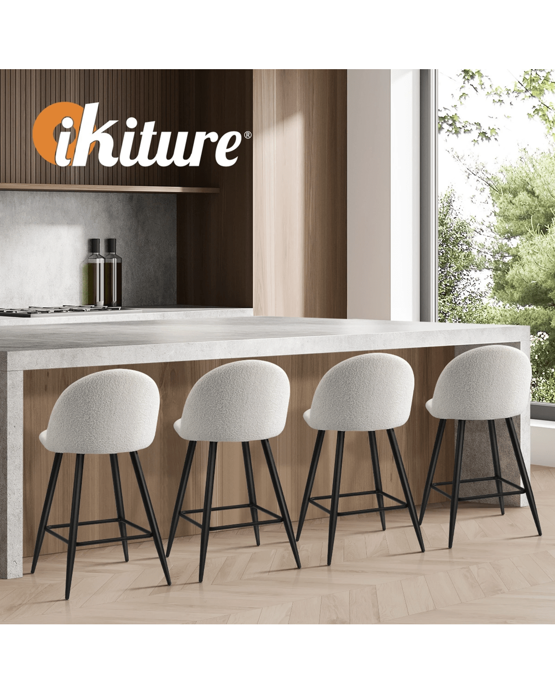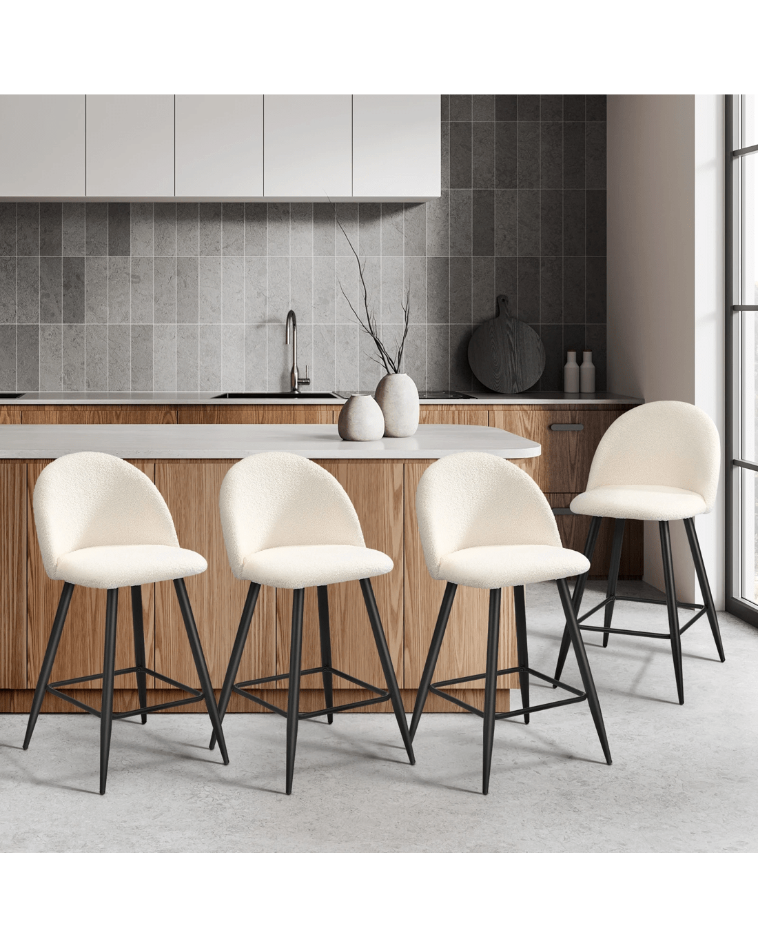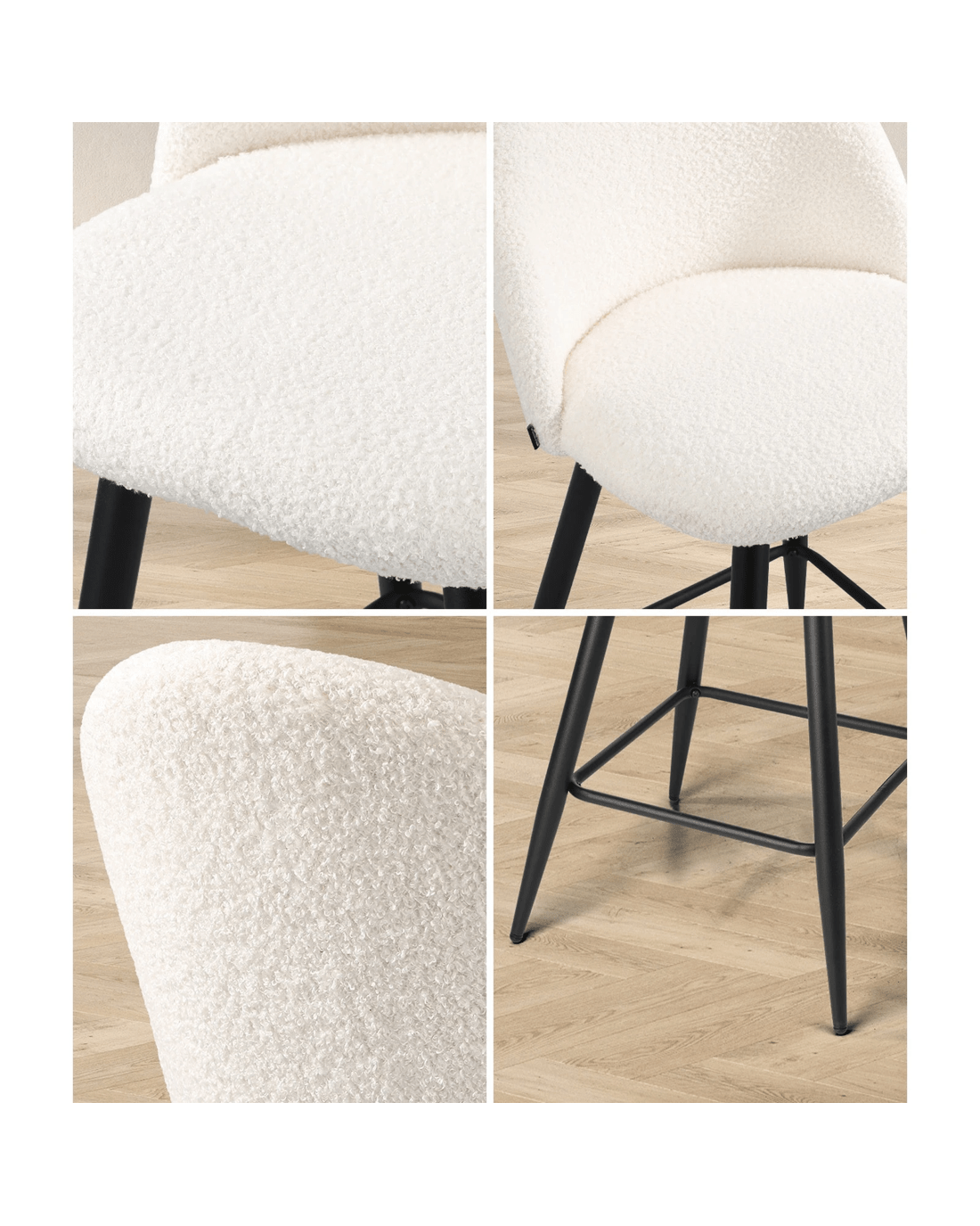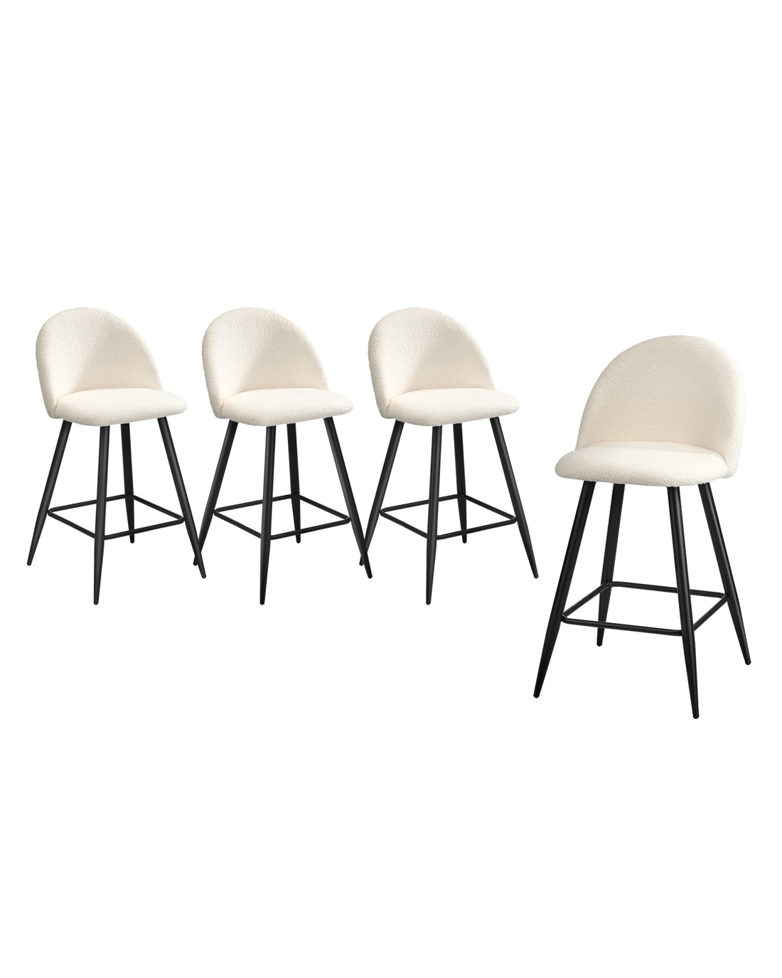 Sold by Kamprad's Oikos 1943Oikiture 4x Bar Stools Kitchen Dining Chairs Counter Stool Boucle Padded - White