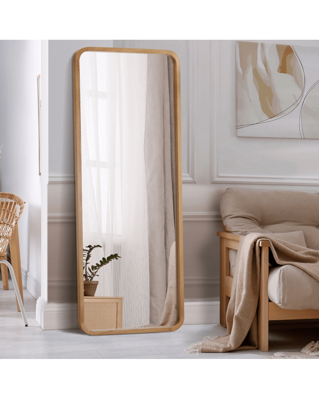Sold by Kamprad's Oikos 1943Oikiture Wooden Full Length Mirror 180x70cm Rectangle Dressing Floor Mirrors - Natural