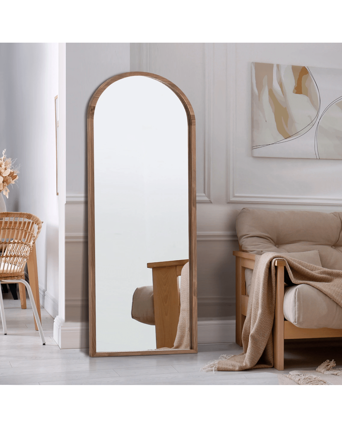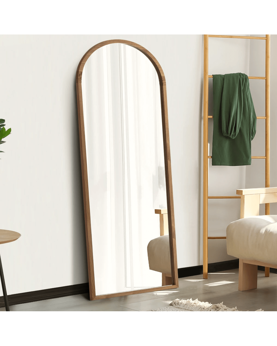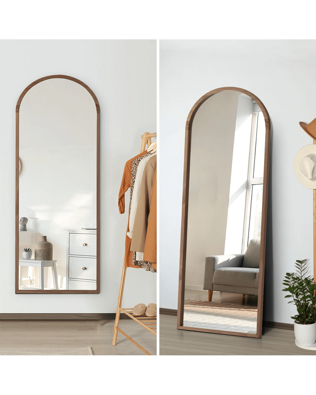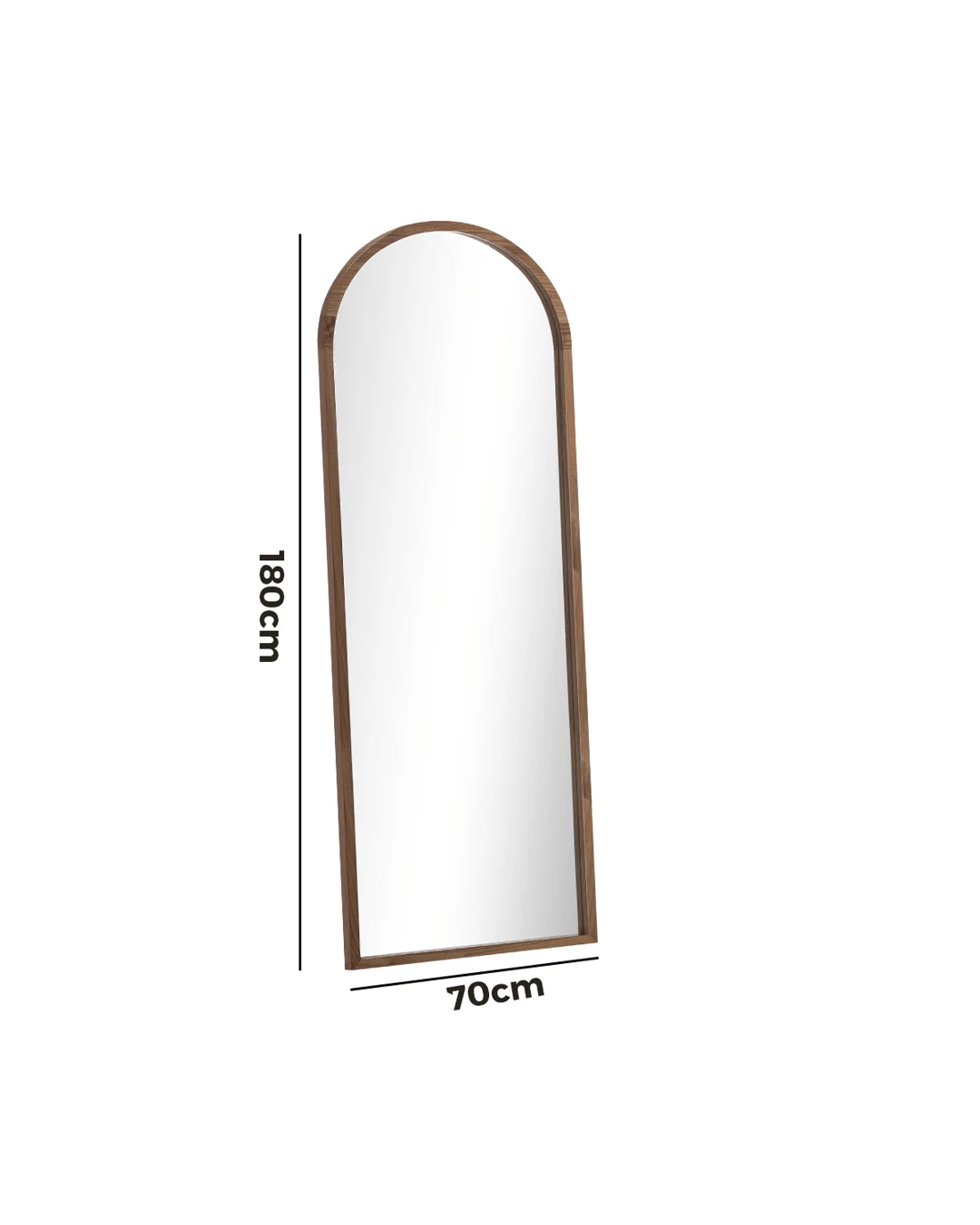 Sold by Kamprad's Oikos 1943Oikiture Wooden Full Length Mirror 180x70cm Arched Dressing Floor Mirrors - Brown